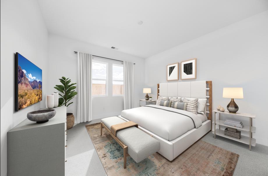 The Julianna's beautiful side porch and foyer flow into the spacious great room and casual dining area, offering views to the desirable covered patio. The well-designed kitchen is enhanced by a large center island with breakfast bar, plenty of counter and cabinet space, and roomy walk-in pantry. The stunning primary bedroom suite is highlighted by a palatial walk-in closet and charming primary bath with dual-sink vanity, large luxe shower, linen storage, and private water closet. The secondary bedroom features a walk-in closet and shared hall bath. Additional highlights include centrally located laundry and additional storage.