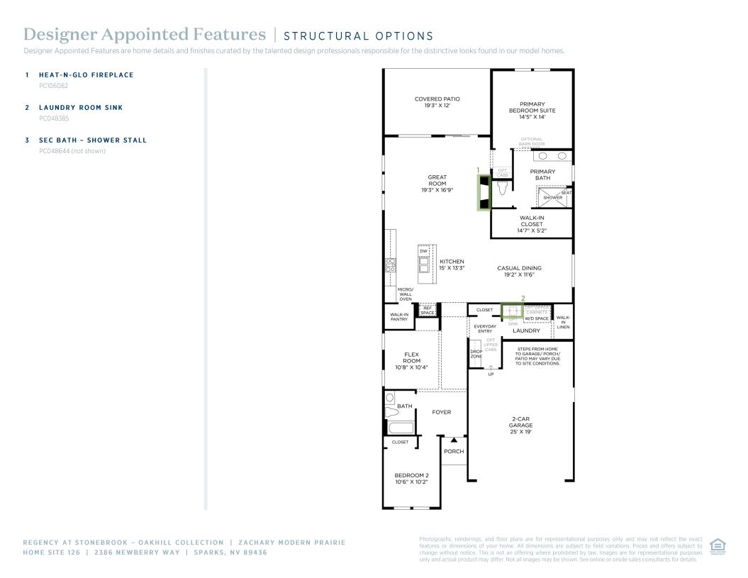 The perfect blend of open living area and quiet corners, the Zachary offers ample space for everything that matters. The home’s cozy foyer flows past a bright flex room. Just past the kitchen, the spacious great room offers views to a desirable covered patio beyond. The well-appointed kitchen overlooks a spacious casual dining area and is highlighted by a large center island with breakfast bar, plenty of counter and cabinet space, and walk-in pantry. The gorgeous primary bedroom suite impresses with a generous walk-in closet and serene primary bath with dual-sink vanity, large luxe shower with seat, and private water closet. The secondary bedroom features a roomy closet and shared hall bath. Additional highlights include a convenient everyday entry and drop zone, centrally located laundry with walk-in linen storage, and impressive 10-foot ceilings throughout.