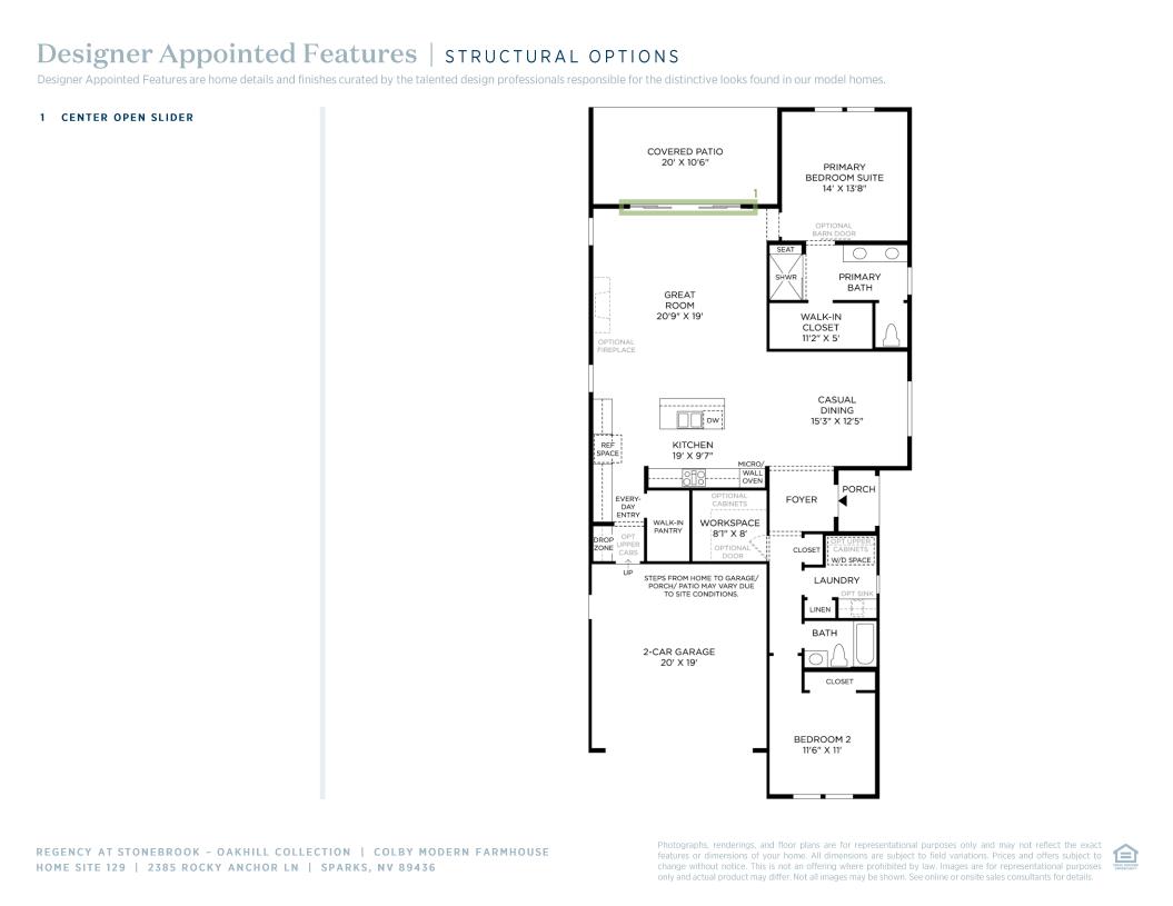 The Colby's warmly inviting foyer opens onto a wide-open living space with bright casual dining area, spacious great room, and views to the desirable rear covered patio. The well-designed kitchen’s large center island overlooks the open floor plan and is perfect for entertaining with plenty of counter and cabinet space and a generous walk-in pantry. The private primary bedroom suite is complete with an ample walk-in closet and relaxing primary bath with dual-sink vanity, large luxe shower with seat, and private water closet. The secondary bedroom features a sizable closet and shared hall bath. Additional highlights include a convenient everyday entry and drop zone, centrally located laundry, and versatile workspace.
