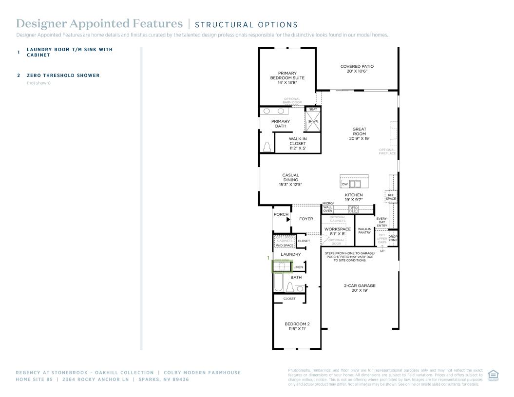 The Colby's warmly inviting foyer opens onto a wide-open living space with bright casual dining area, spacious great room, and views to the desirable rear covered patio. The well-designed kitchen’s large center island overlooks the open floor plan and is perfect for entertaining with plenty of counter and cabinet space and a generous walk-in pantry. The private primary bedroom suite is complete with an ample walk-in closet and relaxing primary bath with dual-sink vanity, large luxe shower with seat, and private water closet. The secondary bedroom features a sizable closet and shared hall bath. Additional highlights include a convenient everyday entry and drop zone, centrally located laundry, and versatile workspace.