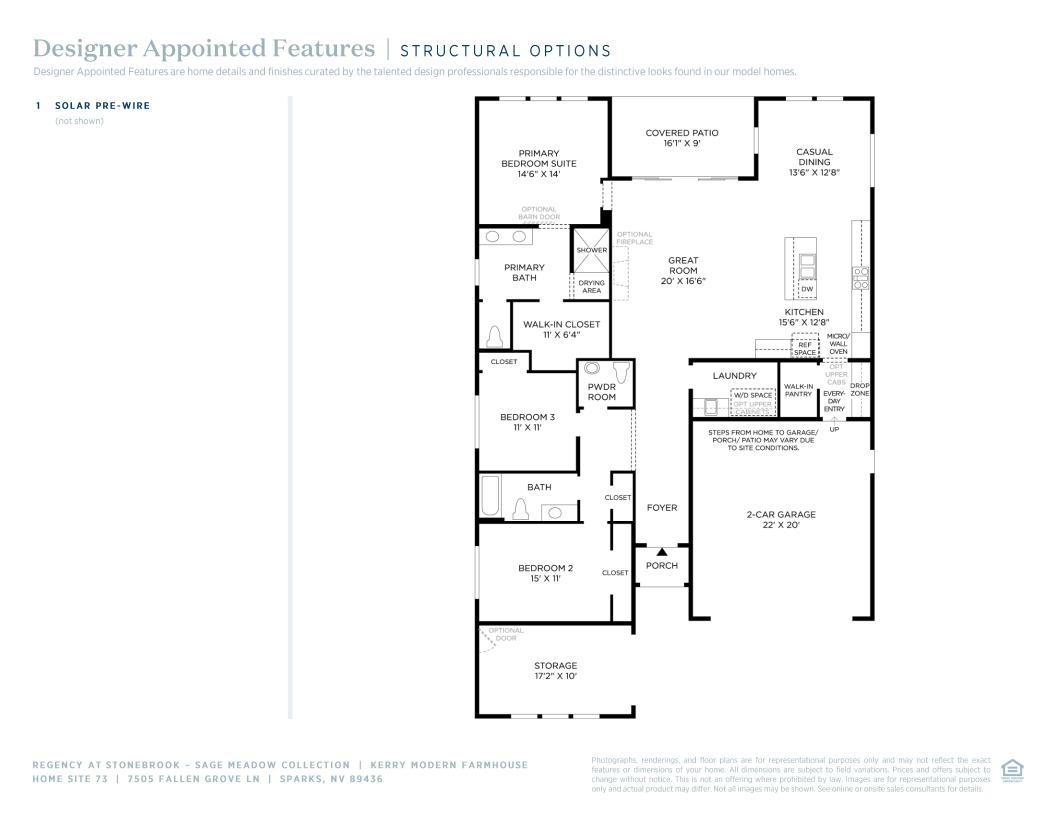 Luxury living is matched by ample storage in the beautiful Kerry home design. The inviting foyer opens to the spacious great room, kitchen, and casual dining area. With a large center island with breakfast bar, the well-designed kitchen offers views to the covered patio beyond the great room. The primary bedroom suite leaves an impression with a sizable walk-in closet and lovely primary bath with dual-sink vanity, large luxe shower with drying area, and private water closet. The secondary bedrooms feature roomy closets and a shared hall bath. Additional highlights include a convenient powder room and everyday entry with drop zone, walk-in pantry off the kitchen, centrally located laundry, and additional storage throughout.