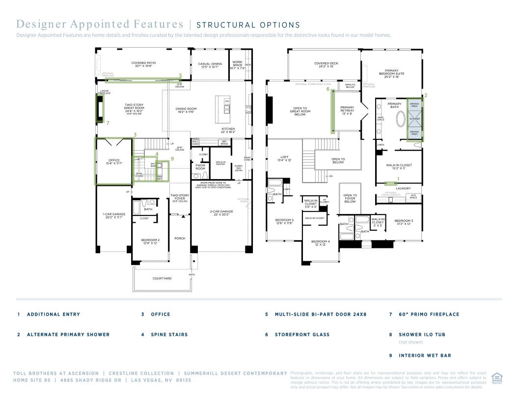 A beautiful private courtyard and airy two-story foyer reveal the Summerhill's soaring great room and expansive covered patio beyond. The well-designed kitchen is complete with a bright casual dining area, a large center island with breakfast bar, plenty of counter and cabinet space, and a generous walk-in pantry. The elegant primary bedroom suite is highlighted by a relaxing primary retreat, an ample walk-in closet, and a charming primary bath with dual vanities, a soaking tub, a luxe shower, linen storage, and a private water closet. Secondary bedrooms feature walk-in closets and private baths. Additional highlights include a versatile first-floor bedroom with a private bath, a spacious flex room, a convenient workspace, easily accessible laundry, a powder room, an everyday entry with drop zone, and plenty of additional storage.