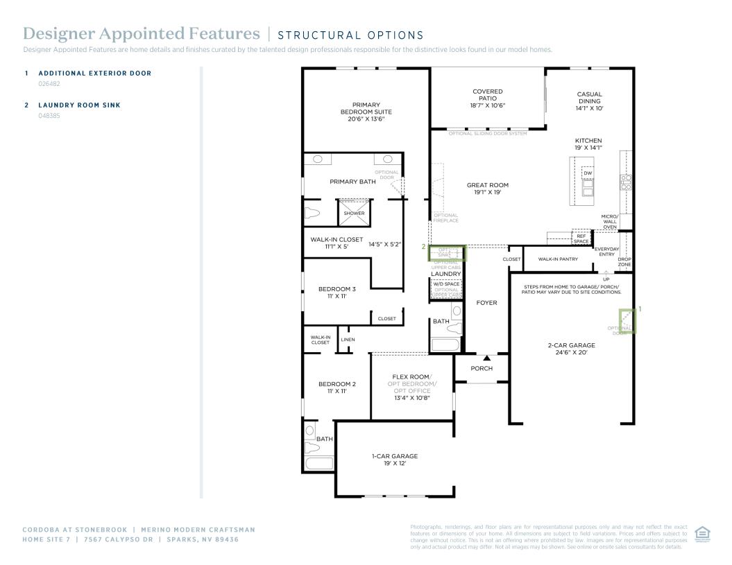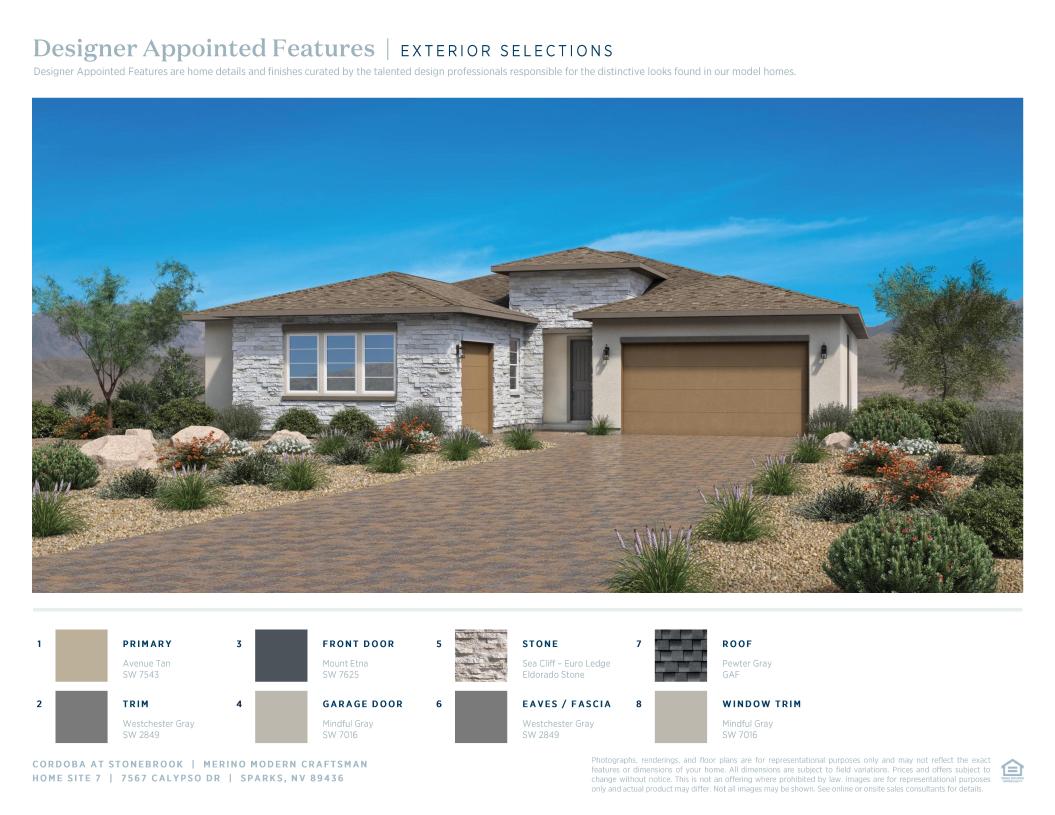 Enter the Merino and discover space and style to spare. An elegantly extended foyer opens onto the stunning great room with rear covered patio. Adjacent to a bright casual dining area, the well-designed kitchen offers a large center island with breakfast bar, plenty of counter and cabinet space, and a sizable walk-in pantry. The superb primary bedroom suite is enhanced by a generous walk-in closet and a spacious primary bath with dual vanities, a large luxe shower, and a private water closet. Adjacent to the spacious flex room are first-floor secondary bedrooms, one with private bath and walk-in closet, the other with a closet and shared hall bath. Additional highlights include a convenient everyday entry, easily-accessible laundry, and ample additional storage.