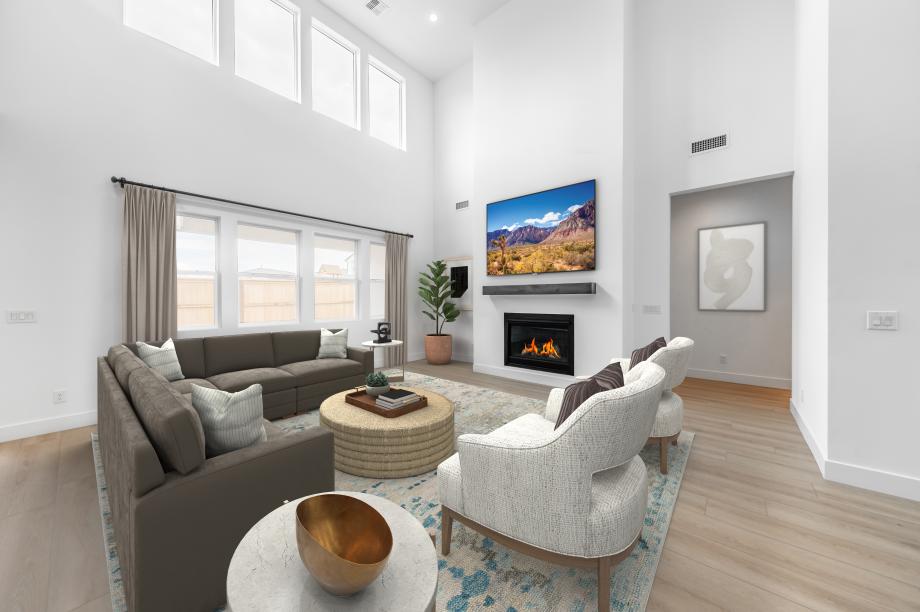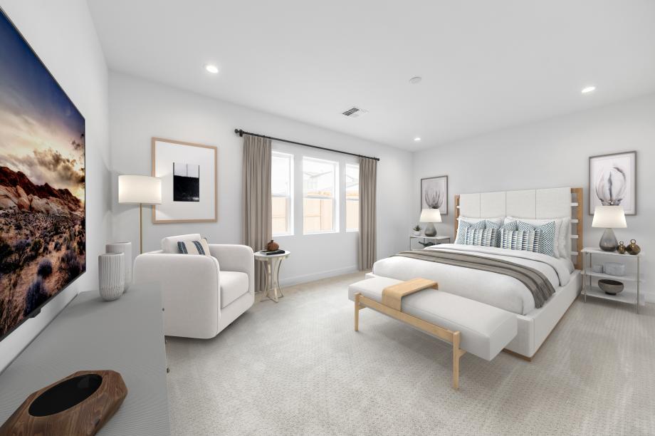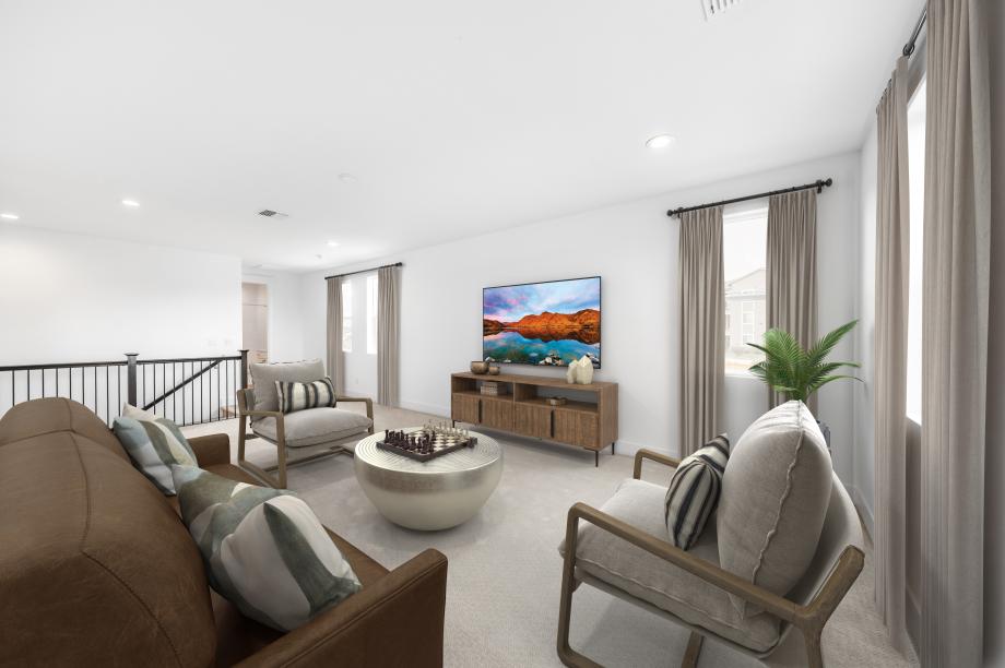 The Merino Elite Spanish Contemporary is a beautifully designed home featuring a striking layout that exudes elegance and sophistication. Modern white cabinetry with satin bronze hardware complements the sleek quartz countertops, while the JennAir appliance package elevates the gourmet kitchen. The spacious primary bedroom is conveniently located on the first floor, and a large loft upstairs offers the perfect space for a movie room.