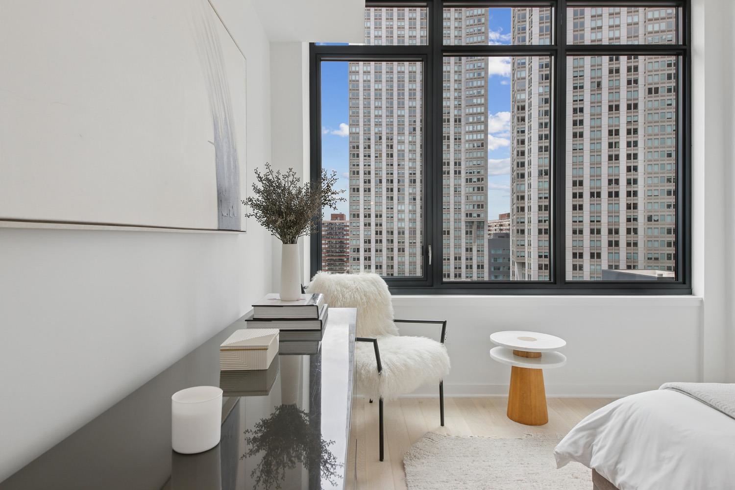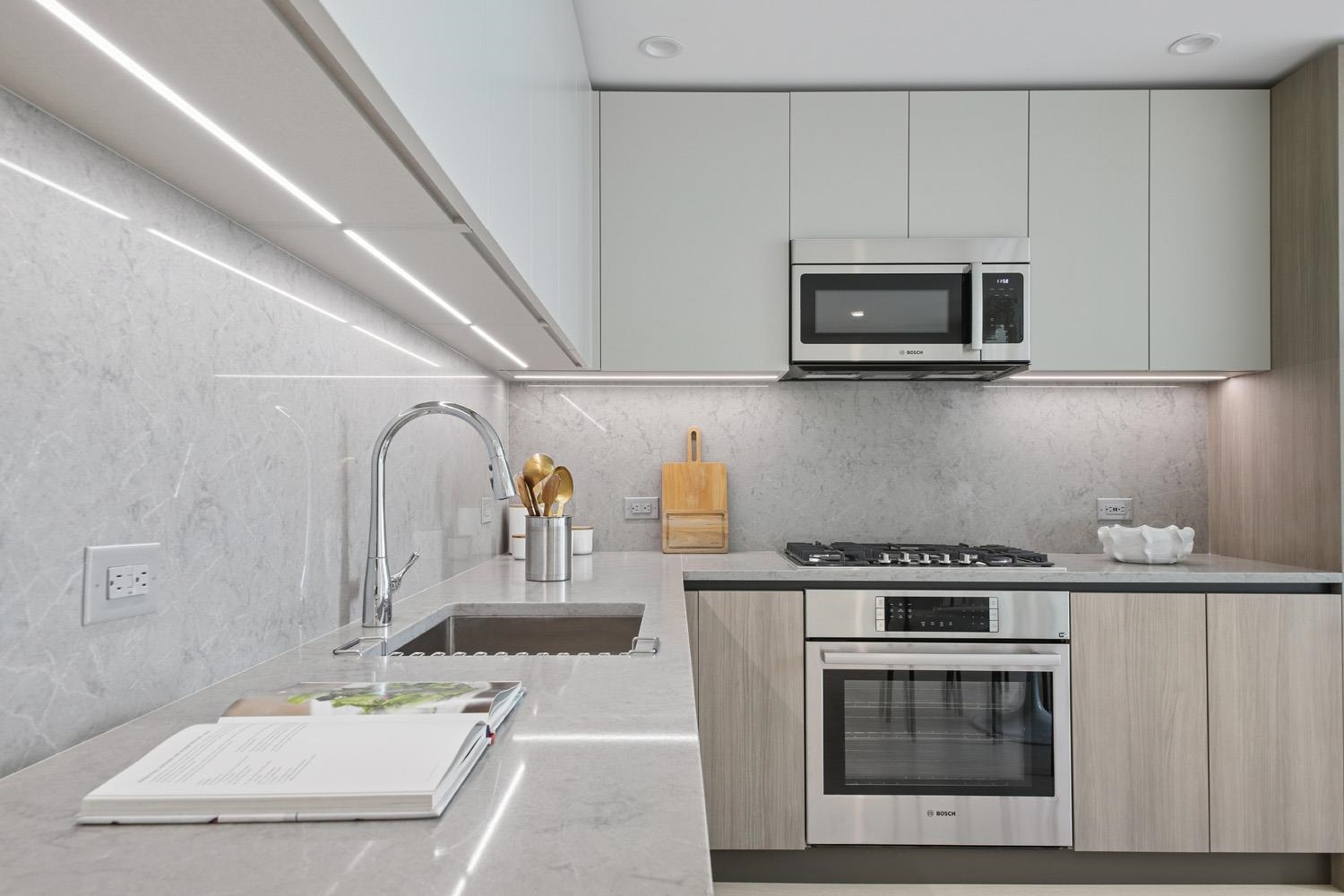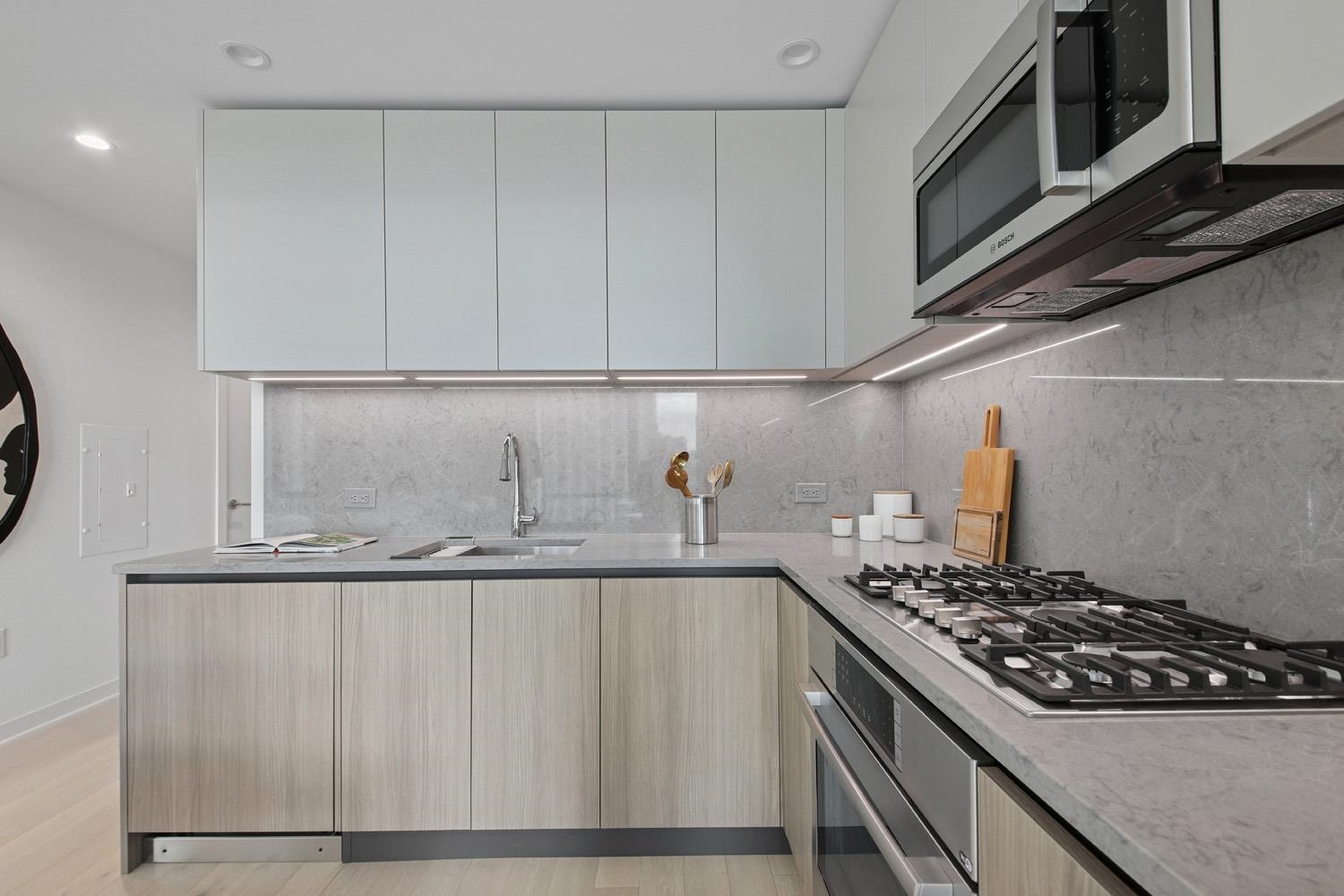 Experience elevated urban living in Residence 1605, nestled in Jersey City's vibrant Powerhouse Arts District. This meticulously designed 721 sq. ft. 1 bedroom offers a harmonious blend of form and function. Floor to ceiling south-facing windows bathe the space in natural light, highlighting the sleek, minimalist design characterized by mixed material finishes and white oak flooring. This building features 259 residences distributed over 34 floors, offering an array of options, including studio, one-bedroom, two-bedroom, two-bedroom with den, and three-bedroom layouts. The open-concept kitchen seamlessly integrates with the living area, featuring custom Italian walnut and dove gray cabinetry, quartz countertops, and Bosch appliances. The spa-inspired bathroom features a single custom vanity, Kohler fixtures, and a soaking tub with porcelain tile surround, offering a serene, modern retreat. Additional highlights include a vented Whirlpool washer and dryer and 1 deeded parking space. Residents enjoy access to world-class amenities, including a sky lounge, rooftop terrace, fitness center, sundeck and pool, residents' lounge, children's playroom, dog run and spa, and a 24-hour attended lobby. Located just moments from the Grove Street PATH station, this residence offers unparalleled convenience and sophistication.
