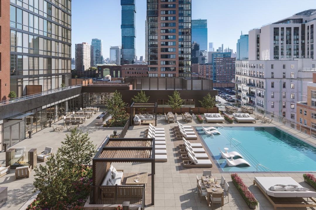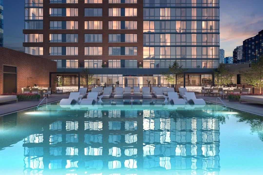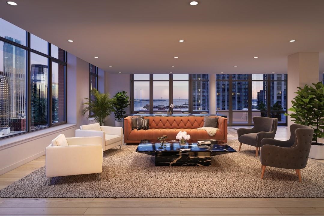 Limited-time seller incentive available: $15,000 toward closing costs or HOA fees for studios and one-bedroom residences; $25,000 toward closing costs or HOA fees for two and three-bedroom residences. Experience elevated urban living in Residence 2907, nestled in Jersey City's vibrant Powerhouse Arts District. This thoughtfully designed 1199 sq. ft. corner, two-bedroom, two-bathroom home blends modern form with refined function. Floor to ceiling southwest-facing windows flood the space with natural light, enhancing the sleek, minimalist design and white oak flooring. This home offers 10ft. ceilings, large walk-in closet and plenty of kitchen storage and cabinet space with added custom pantry. The open-concept gourmet kitchen seamlessly integrates with the living area, featuring custom Italian walnut and dove gray cabinetry, quartz countertops, and Bosch and Thermador appliances. The kitchen is a true chef's dream, designed to cater to both casual living and refined entertaining. The primary suite offers an unparalleled retreat, featuring a large walk-in closet and a spa-inspired ensuite with dual custom vanities, Kohler fixtures, and refined porcelain tile accents. The 2nd bathroom features a single custom vanity, Kohler fixtures, and a soaking tub with porcelain tile surround, offering a serene space. Additional highlights include a Whirlpool washer and vented dryer and 1 deeded parking space. Residents enjoy access to world-class amenities, including a sky lounge, rooftop terrace, fitness center, sundeck and pool, residents' lounge, children's playroom, dog run and spa, and a 24-hour attended lobby. Located just moments from the Grove Street PATH station, this residence offers unparalleled convenience and sophistication. This building features 259 residences distributed over 34 floors, offering an array of options, including studio, one-bedroom, two-bedroom, two-bedroom with den, and three-bedroom layouts.