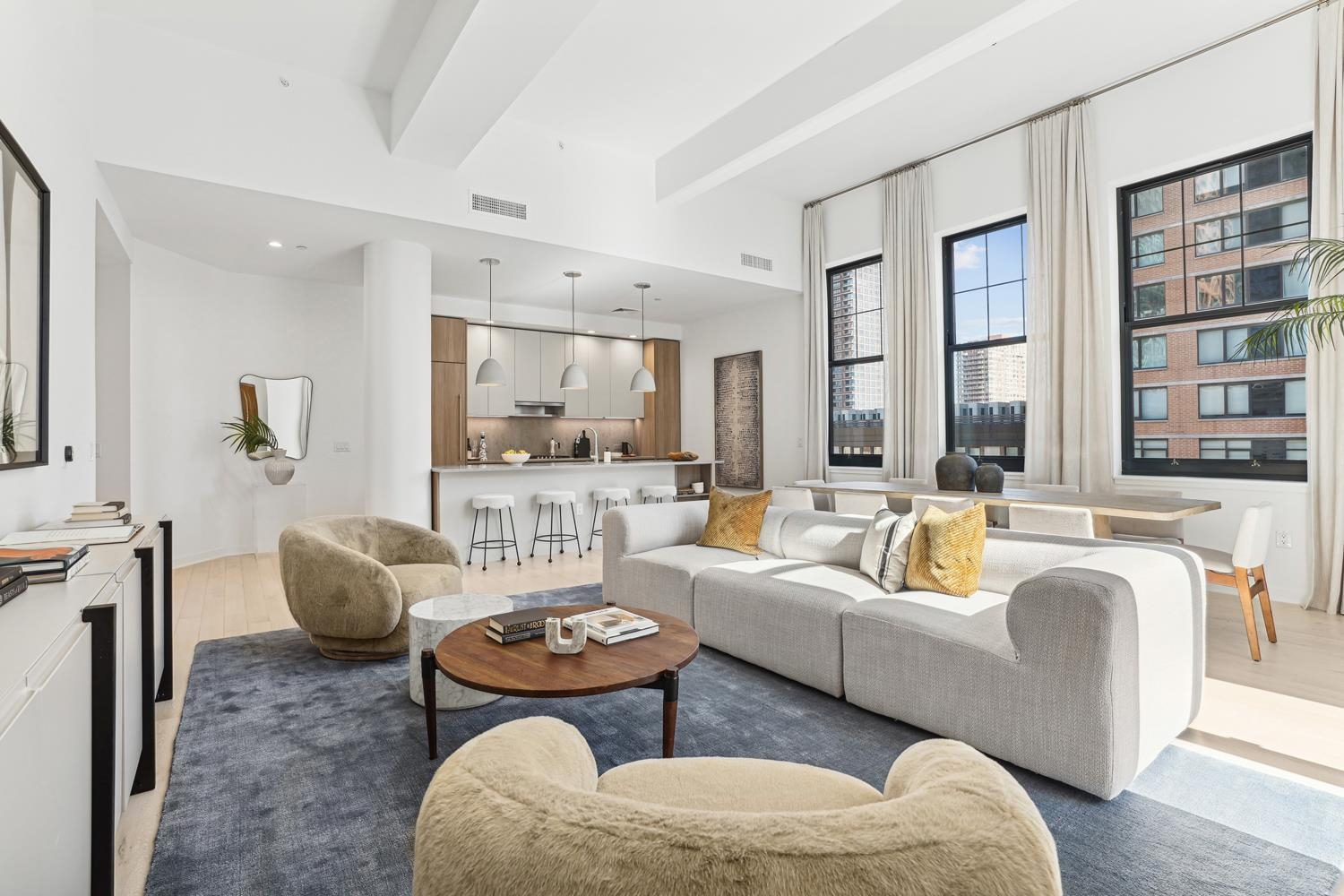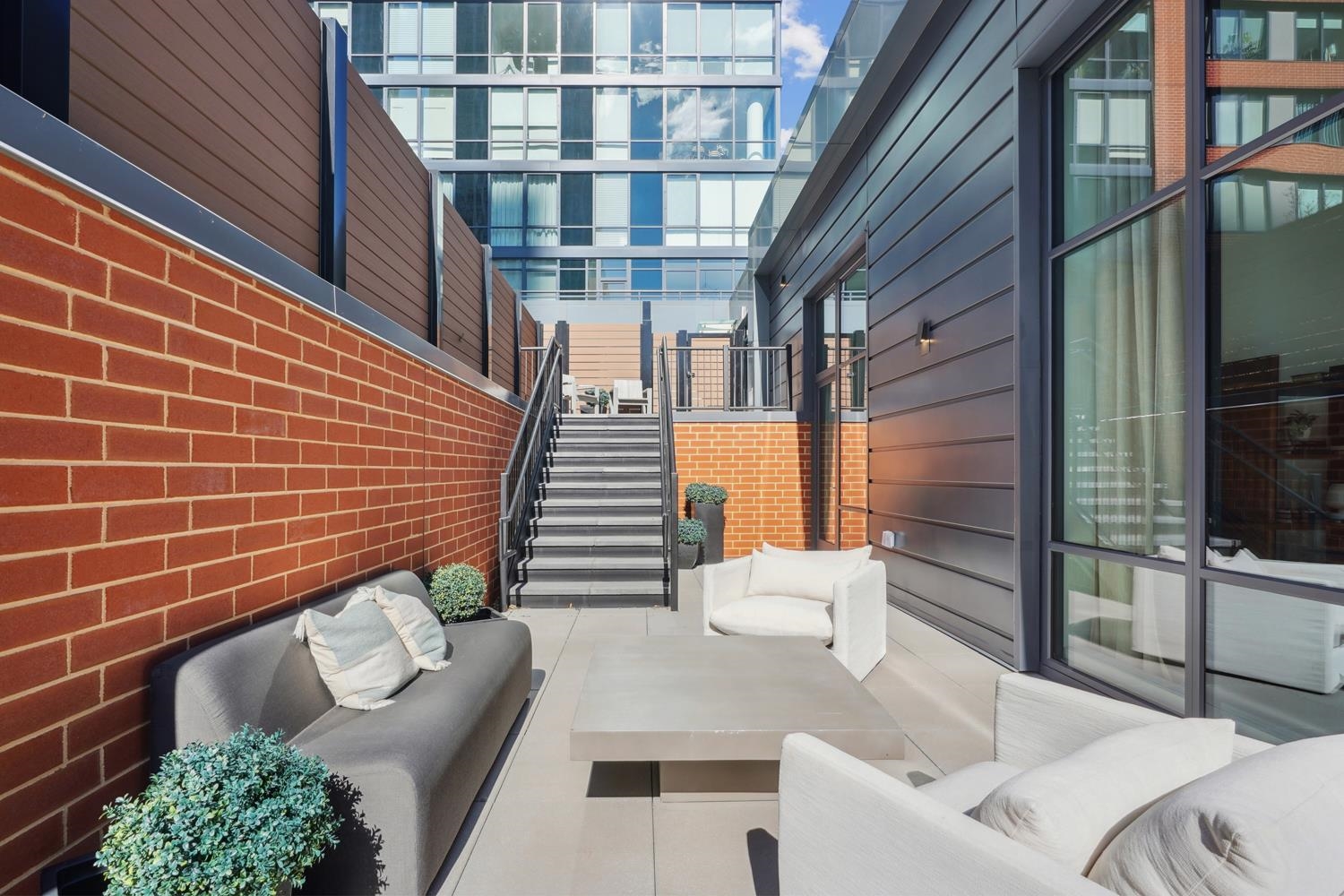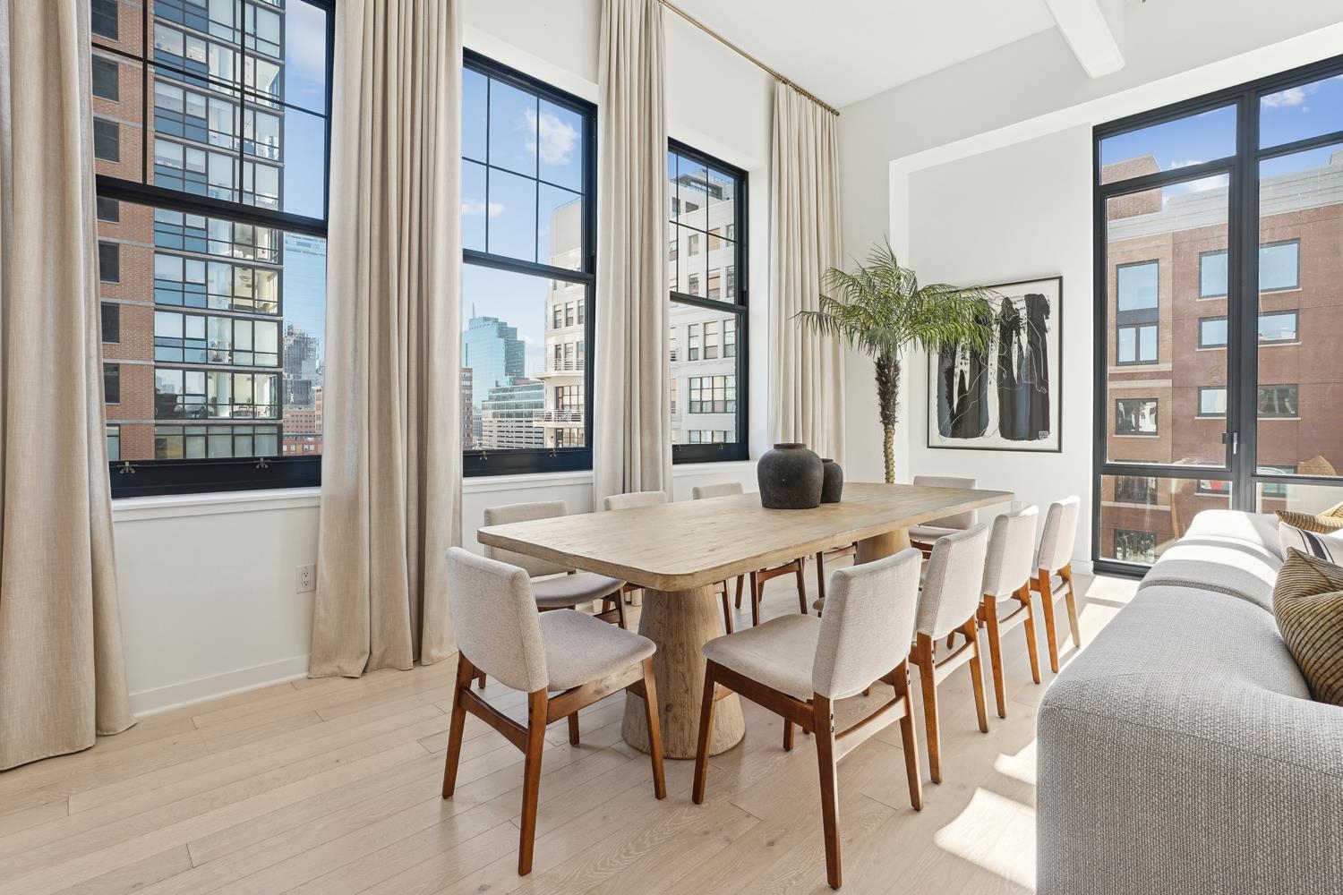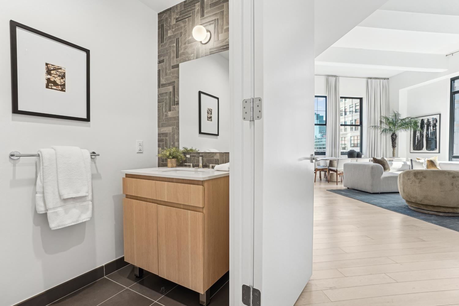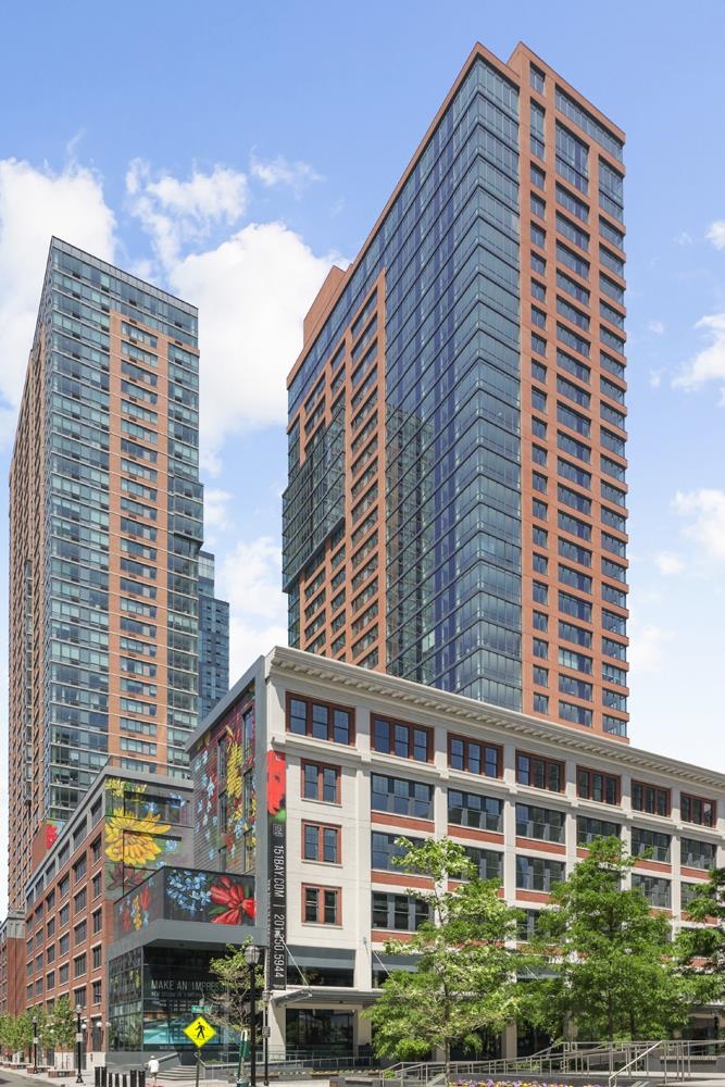 Experience elevated urban living in Residence 809, nestled in Jersey City’s vibrant Powerhouse Arts District. This thoughtfully designed 2,382 sq. ft., three-bedroom + den home blends modern form with refined function. North-facing windows bring in soft, consistent natural light, highlighting the sleek, minimalist design and white oak flooring. This home offers 13 ft. ceilings, a large walk-in closet, and ample kitchen storage and cabinet space, as well as a 710 sq. ft. terrace. The open-concept gourmet kitchen seamlessly integrates with the living area, featuring custom Italian walnut and dove gray cabinetry, quartz countertops, and Bosch and Thermador appliances. The kitchen is a true chef's dream, designed to cater to both casual living and refined entertaining. The primary suite offers an unparalleled retreat, featuring a large walk-in closet and a spa-inspired ensuite with dual custom vanities, Kohler fixtures, and refined porcelain tile accents. The 2nd bathroom features a single custom vanity, Kohler fixtures, and a soaking tub with porcelain tile surround, offering a serene space. Additional highlights include a Whirlpool washer and vented dryer and 1 deeded parking space. Residents enjoy access to world-class amenities, including a sky lounge, rooftop terrace, fitness center, sundeck and pool, residents' lounge, children's playroom, dog run and spa, and a 24-hour attended lobby. Located just moments from the Grove Street PATH station, this residence offers unparalleled convenience and sophistication. This building features 259 residences distributed over 34 floors, offering an array of options, including studio, one-bedroom, two-bedroom, two-bedroom with den, and three-bedroom layouts.