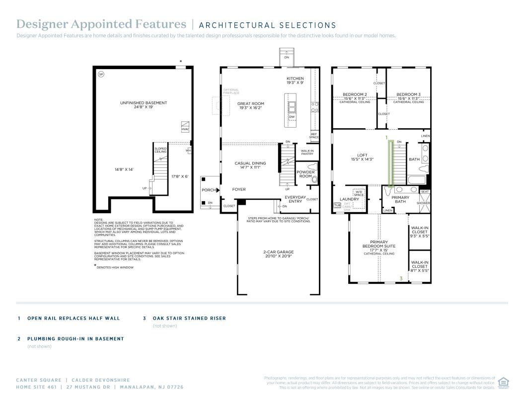 The Calder’s inviting floor plan is ideal for modern living. The welcoming foyer reveals a casual dining area and a spacious great room. Adjacent, the well-appointed kitchen offers desirable rear yard access, an oversized center island with breakfast bar, plenty of counter and cabinet space, and an ample walk-in pantry. Complementing the gorgeous primary bedroom suite is a soaring cathedral ceiling, dual walk-in closets, and a marvelous primary bath with a dual-sink vanity, a luxe shower with seat, and linen storage. Secondary bedrooms feature cathedral ceilings and sizable closets, and share a hall bath with a a dual-sink vanity. Additional highlights include a generous loft, easily accessible second-floor laundry, a powder room, an everyday entry, and plenty of extra storage.
