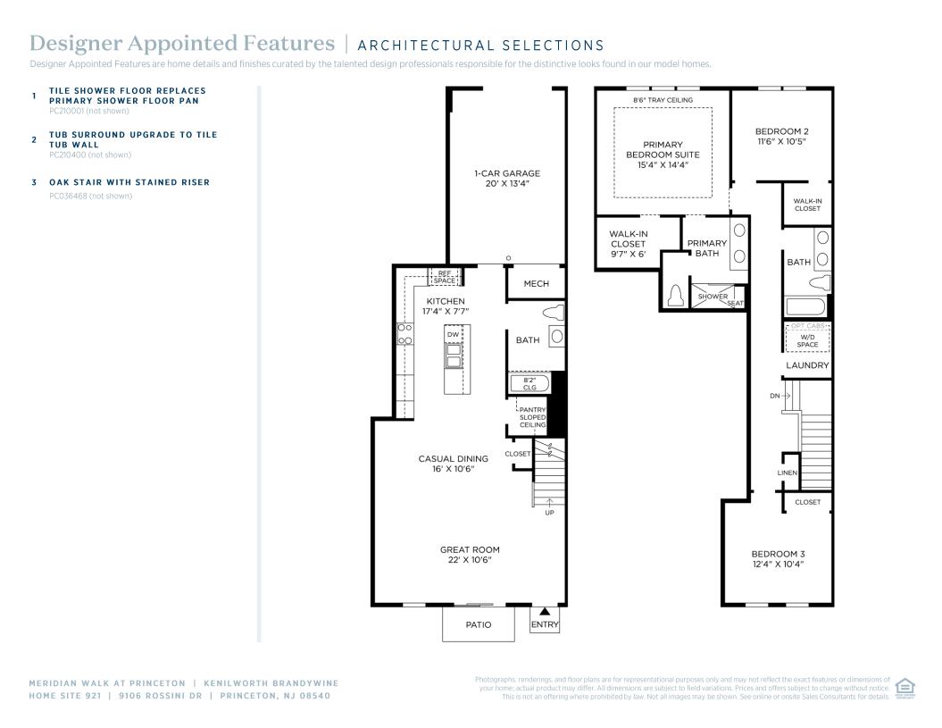 The Kenilworth's lovely great room with patio is central to the well-designed kitchen, complete with a spacious casual dining area, a large center island with breakfast bar, wraparound counter and cabinet space, and a roomy pantry. Highlighting the serene primary bedroom suite is a sizable walk-in closet and marvelous primary bath with a dual-sink vanity, a large luxe shower with seat, and a private water closet. Secondary bedrooms feature ample closets and a shared hall bath with a dual-sink vanity. Additional highlights include easily accessible laundry on the second floor, a convenient hall bath on the first floor, and ample additional storage.
