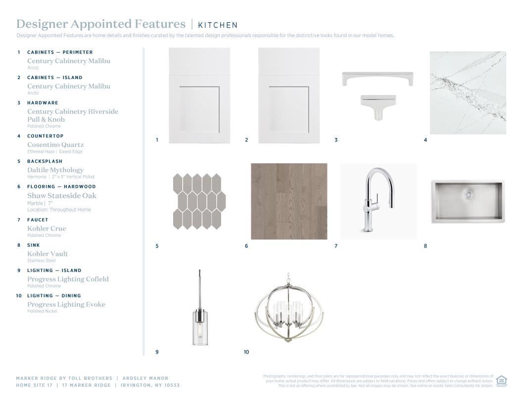 Toll Brothers Designer Appointed Collections are professionally curated selections of fixtures and finishes that come together to create a cohesive, distinctive look for a home. Learn More