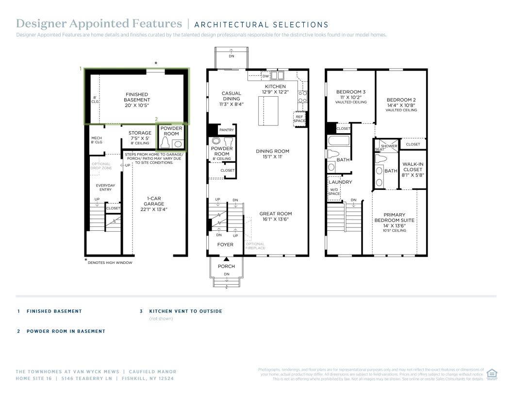 A soaring two-story foyer and inviting stairs lead to the Caufield's bright living level, complete with a spacious great room, dining room, and a casual dining area with desirable rear yard access. The well-appointed kitchen offers a generous center island with breakfast bar, wraparound counter and cabinet space, and a roomy pantry. Enhancing the serene primary bedroom suite is an ample walk-in closet and a gracious primary bath with a dual-sink vanity and a luxe shower with seat. Secondary bedrooms with vaulted ceilings and sizable closets share a full hall bath. Additional highlights include conveniently located bedroom-level laundry, a powder room on the living level, an everyday entry on the lower level, and ample extra storage.