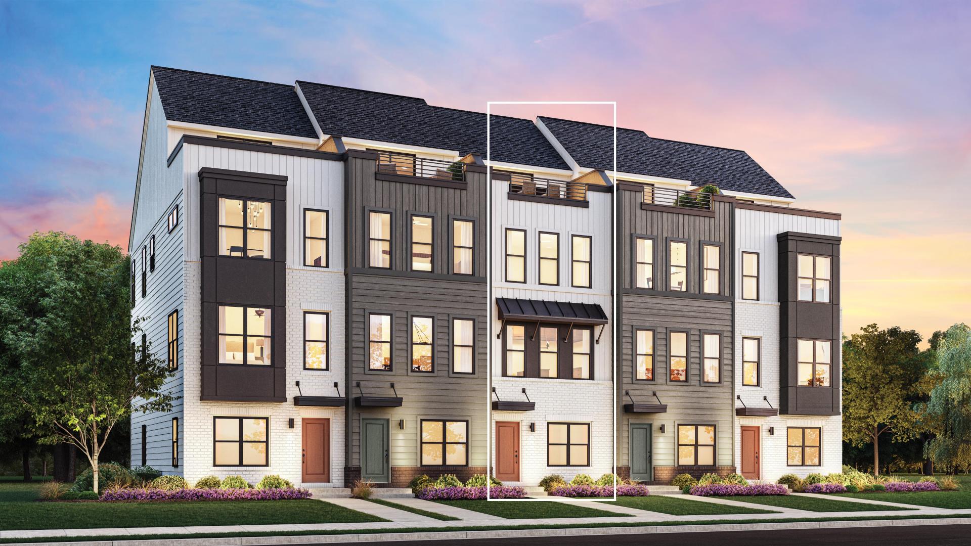 The Dunbrook features a beautiful blend of luxurious living spaces ideal for relaxing and entertaining. An inviting foyer leads up to the main living level, highlighted by a cozy casual dining area and a spacious great room with direct access to an outdoor deck. The well-equipped kitchen boasts abundant counter and cabinet space as well as a center island with breakfast bar, ideal for effortless entertaining. Upstairs, the lush primary bedroom suite is enhanced with a large walk-in closet and a tranquil primary bath that includes dual sinks, a luxe shower with seat, and a private water closet. Adjacent, the secondary bedroom comes with a roomy closet and private bath. A versatile loft can be found on the fourth floor, featuring a full bath, closet space, and access to an outdoor terrace. Additional features of the Dunbrook include a powder room on the main living level, bedroom-level laundry, and extra storage throughout the home.