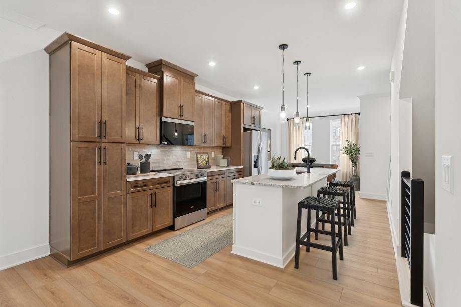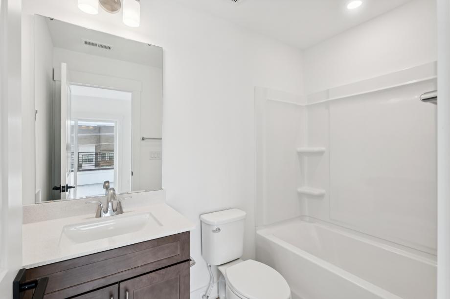 The Dunbrook features a beautiful blend of luxurious living spaces ideal for relaxing and entertaining. An inviting foyer leads up to the main living level, highlighted by a cozy casual dining area and a spacious great room with direct access to an outdoor deck. The well-equipped kitchen boasts abundant counter and cabinet space as well as a center island with breakfast bar, ideal for effortless entertaining. Upstairs, the lush primary bedroom suite is enhanced with a large walk-in closet and a tranquil primary bath that includes dual sinks, a luxe shower with seat, and a private water closet. Adjacent, the secondary bedroom comes with a roomy closet and private bath. A versatile loft can be found on the fourth floor, featuring a full bath, closet space, and access to an outdoor terrace. Additional features of the Dunbrook include a powder room on the main living level, bedroom-level laundry, and extra storage throughout the home.