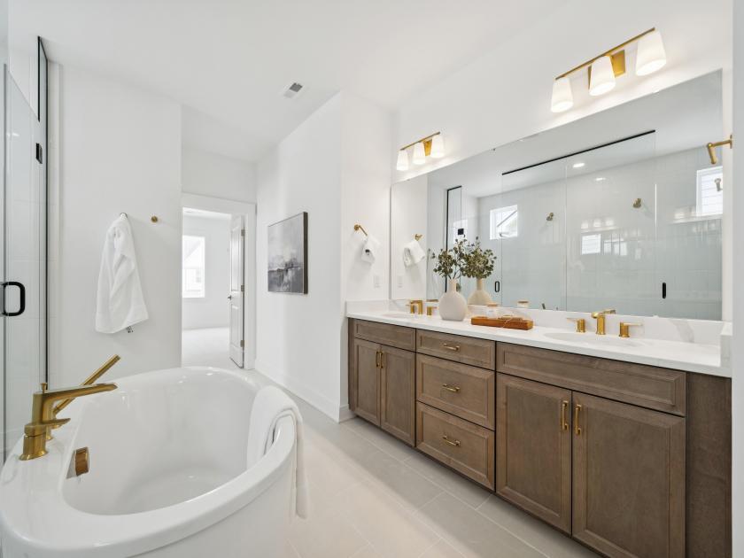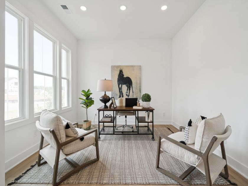The Atwater home design impresses with its thoughtful layout and luxurious features. A welcoming foyer leads into the heart of the home, where a stunning two-story great room creates an airy, open atmosphere. The well-appointed kitchen boasts a large island and walk-in pantry, seamlessly connecting to both casual and formal dining areas. A versatile flex room and first-floor bedroom suite add adaptability to the floor plan. The primary suite is a true retreat, featuring a spa-like bathroom with dual sinks, a soaking tub, a luxurious shower, and a private water closet, complemented by a spacious walk-in closet. Secondary bedroom suites offer privacy and comfort for family or guests. Convenience is key with a bedroom-level laundry room and an everyday entry to keep the main living areas tidy.