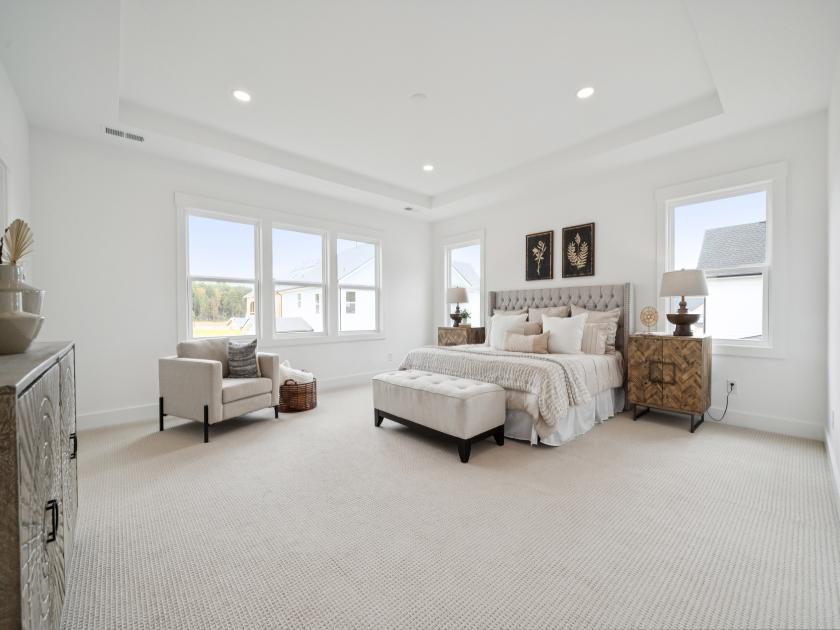 The elegantly designed Wilburn offers a harmonious blend of elegance and functionality. A soaring two-story foyer extends past a sophisticated dining room into the expansive great room and bright casual dining area, which seamlessly connects to a lovely patio. The gourmet kitchen features a center island with a breakfast bar, abundant counter and cabinet space, a walk-in pantry, and a convenient passthrough to the formal dining room—perfect for effortless entertaining. On the second floor, the serene primary bedroom offers a private escape, showcasing a walk-in closet and a relaxing bath complete with a dual-sink vanity, a luxe shower with a seat and drying area, a linen closet, and a private water closet. Three generous secondary bedrooms surround a stunning loft space—two of the secondary bedrooms feature walk-in closets and share a well-appointed hall bath, and one offers a private bath. Additional highlights include a lovely first-floor secondary bedroom suite, a flex room just off the great room, convenient everyday entry, easily accessible second-floor laundry, and a two-car garage.