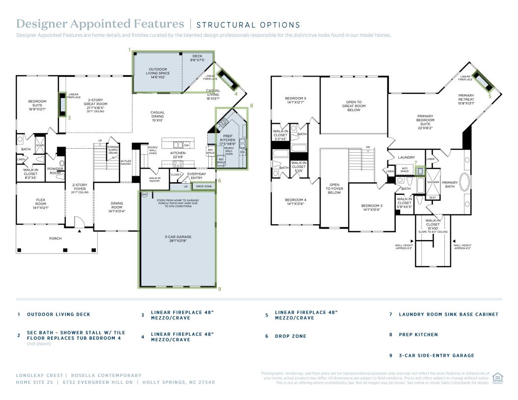 The Rosella pairs dramatic design with modern comfort across two spacious levels. A soaring two-story foyer leads past the formal dining room and butler’s pantry into an open main living area. At the heart of the home, the two-story great room connects effortlessly to the casual dining area, casual living area, and kitchen, which features a large island and walk-in pantry. A nearby patio adds space for outdoor dining and relaxing. A first-floor bedroom suite includes a private bath with shower and seat, plus a generous walk-in closet. Upstairs, the elegant primary suite offers a primary retreat, spacious walk-in closet, and a spa-like bath with dual vanities, soaking tub, shower with seat, and private water closet. Each of the three secondary bedrooms has its own full bath—perfect for family or guests. Additional highlights include a flex room, powder room, everyday entry, and second-floor laundry.