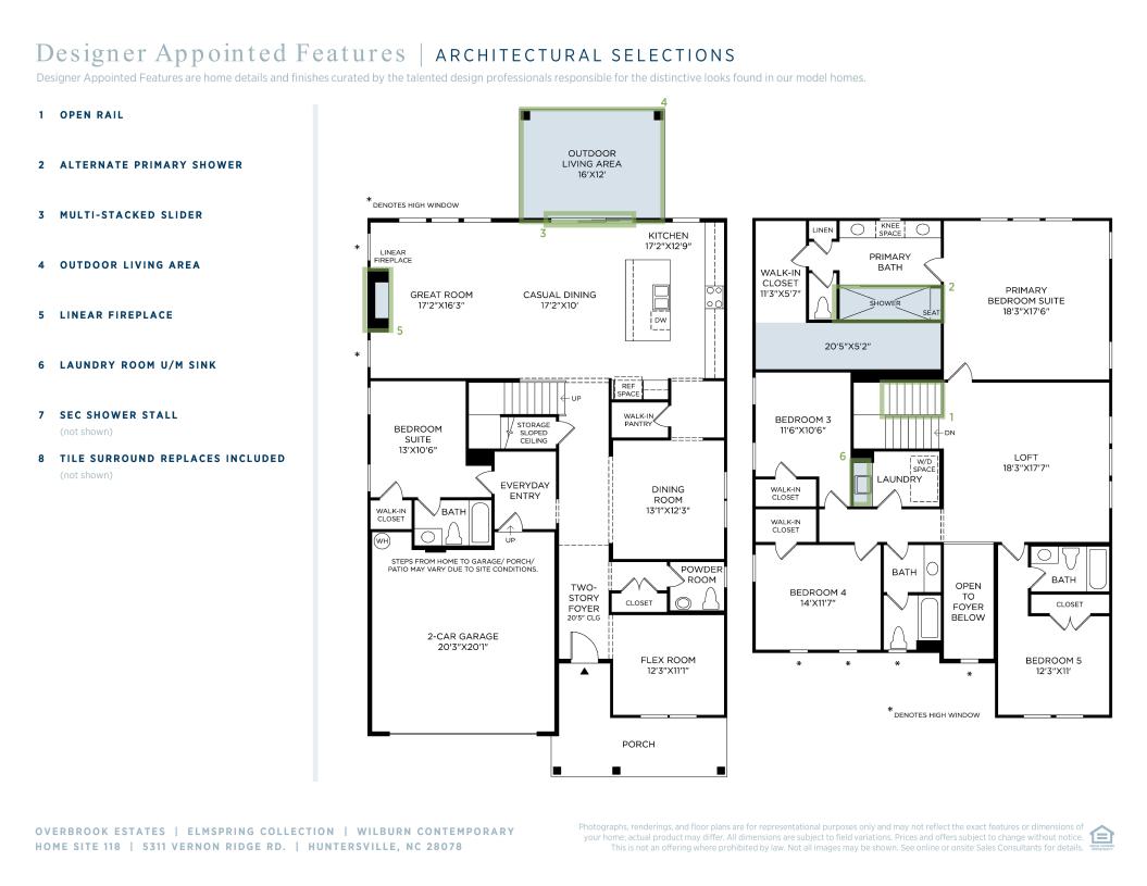 The elegantly designed Wilburn offers a harmonious blend of elegance and functionality. A soaring two-story foyer extends past a sophisticated dining room into the expansive great room and bright casual dining area, which seamlessly connects to a lovely patio. The gourmet kitchen features a center island with a breakfast bar, abundant counter and cabinet space, a walk-in pantry, and a convenient passthrough to the formal dining room—perfect for effortless entertaining. On the second floor, the serene primary bedroom offers a private escape, showcasing a walk-in closet and a relaxing bath complete with a dual-sink vanity, a luxe shower with a seat and drying area, a linen closet, and a private water closet. Three generous secondary bedrooms surround a stunning loft space — two of the secondary bedrooms feature walk-in closets and share a well-appointed hall bath, and one offers a private bath. Additional highlights include a lovely first-floor secondary bedroom suite, a flex room just off the great room, convenient everyday entry, easily accessible second-floor laundry, and a two-car garage.