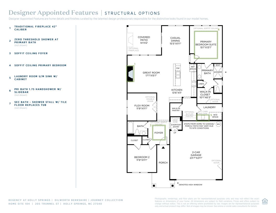 From the moment you enter, the Dilworth makes an impression. The airy foyer and hallway reveal a sizable flex room, and views to the expansive great room and casual dining area with covered patio. Highlighting the well-appointed kitchen are a large center island with breakfast bar, plenty of counter and cabinet space, a roomy walk-in pantry, and convenient workspace. The superb primary bedroom suite is complemented by a generous walk-in closet and a serene primary bath with a dual-sink vanity, a large luxe shower with seat, linen storage, and a private water closet. The secondary bedroom features a sizable closet with shared hall bath. Additional highlights include a convenient everyday entry, a centrally located laundry, and plenty of additional storage.