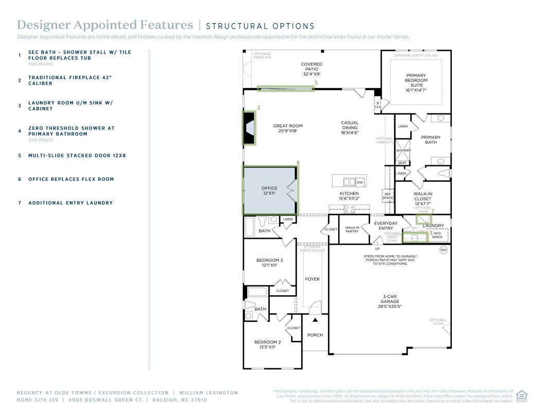The kitchen is truly the heart of the William home design. Overlooking the expansive great room, casual dining area, and spacious covered patio, the well-appointed kitchen is complete with a large center island with breakfast bar, plenty of counter and cabinet space, and an ample walk-in pantry. Complementing the majestic primary bedroom suite are a large walk-in closet and lovely primary bath with dual vanities, a large luxe shower with seat, linen storage, and a private water closet. Secondary bedrooms, one with private bath, the other with shared hall bath, feature roomy closets. Additional highlights include a generous flex room adjacent to the great room, a convenient everyday entry with adjacent laundry, and ample additional storage.