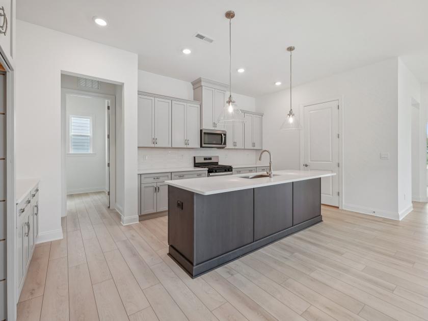 This single-story, open floor plan has 3 bedrooms and 2 baths. Overlooking the great room and accompanied by a casual dining area, the gorgeous kitchen is the perfect environment for entertaining guests with wraparound counter space and a sprawling central island. The great room is the perfect setting for relaxation with its cozy fireplace and ample natural light. The spacious primary bedroom suite offers a luxurious bath and impressive closet space. Flex space on the first floor could be used as an office or a yoga room—the possibilities are endless.