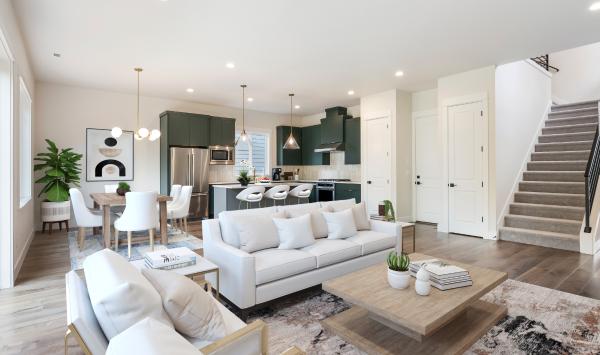 Open-concept main living level of the Kruse home design offers ample space for entertaining