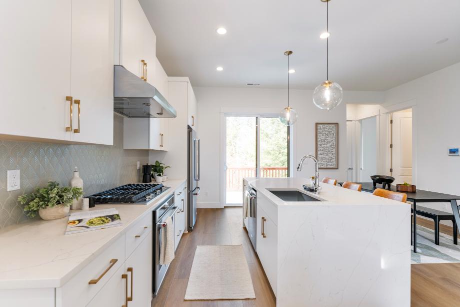 Complete with top-tier design features in a desirable location, this is the home you've always dreamt of. The stunning kitchen is highlighted by a designer scalloped tile backsplash, modern flat-panel cabinets with rose gold hardware, a large central island, and slab quartz counters. Embrace relaxation in the sun-filled great room that is bursting with natural light and is adjacent to the kitchen and casual dining area. Sliding doors open to the main living level deck that provides ample space for outdoor entertainment and serene greenspace views. The second floor offers a versatile loft space that can be suited to your needs. The secluded primary bedroom retreat boasts two large closets, separate vanities, and a luxurious walk-in shower. Downstairs, the daylight basement features a versatile living space, a covered patio, and a private bedroom suite and bathroom that is ideal for hosting guests. The community is situated just minutes away from shopping, dining, and entertainment. Be the first to see this gorgeous home in person by scheduling an appointment today!