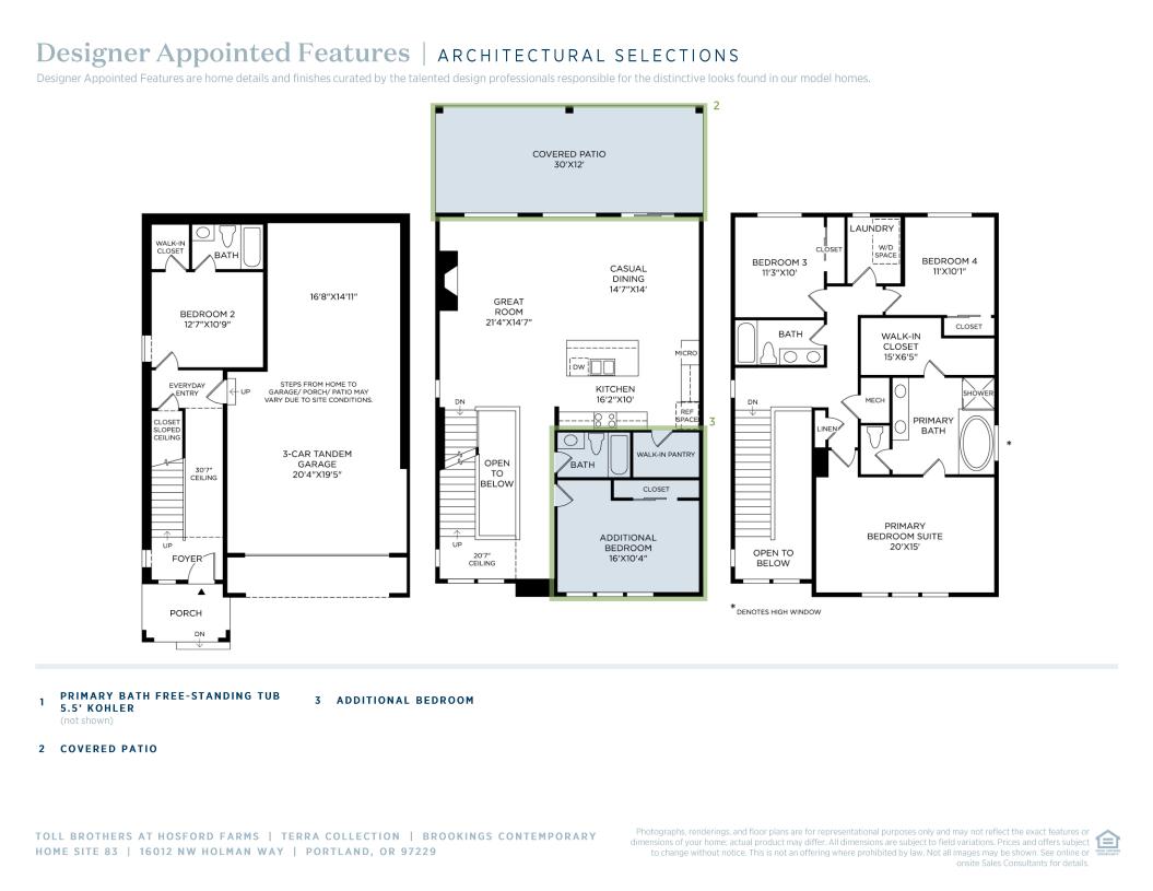The thoughtfully designed Brookings opens onto a cozy foyer and charming stairs flowing up to the bright great room and casual dining area with desirable patio. Overlooking the main living areas, the well-appointed kitchen is defined by a large center island with breakfast bar, plenty of counter and cabinet space, and an ample walk-in pantry. The impressive primary bedroom suite highlights a massive walk-in closet and luxurious primary bath with a dual-sink vanity, a large soaking tub, a luxe shower, and a private water closet. Secondary bedrooms feature sizable closets and shared hall bath with dual-sink vanity. Additional highlights include a versatile first-floor bedroom with walk-in closet and private bath, a convenient first-floor everyday entry and a second-floor powder room, an easily-accessible third-floor laundry, and additional storage throughout.