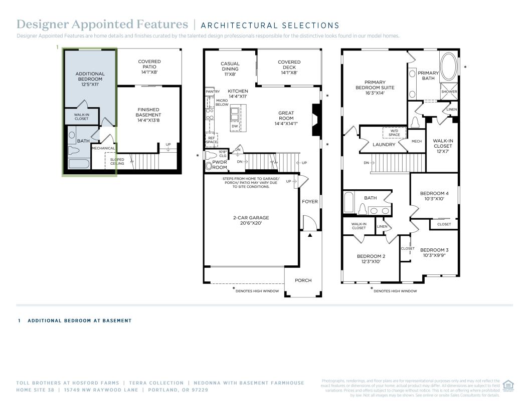 The Nedonna with Basement home design offers a perfect blend of practicality and elegance. The heart of the home is the great room, which features a cozy fireplace and seamlessly connects to the casual dining area and a modern kitchen featuring an island with breakfast bar. Just beyond, a lovely covered deck provides a wonderful place for entertaining or relaxing. Located on the second floor, the lovely primary bedroom features a walk-in closet and a tranquil bath with a dual-sink vanity, a soothing soaking tub, a luxe shower, linen storage, and a private water closet. Three secondary bedrooms, including one with a walk-in closet, share a full hall bath with dual-sink vanity. Expanding the home’s living space is a finished basement with access to a covered patio, a flex room, and a powder room. Other desirable features include a first-floor powder room, bedroom-level laundry, and extra storage throughout.
