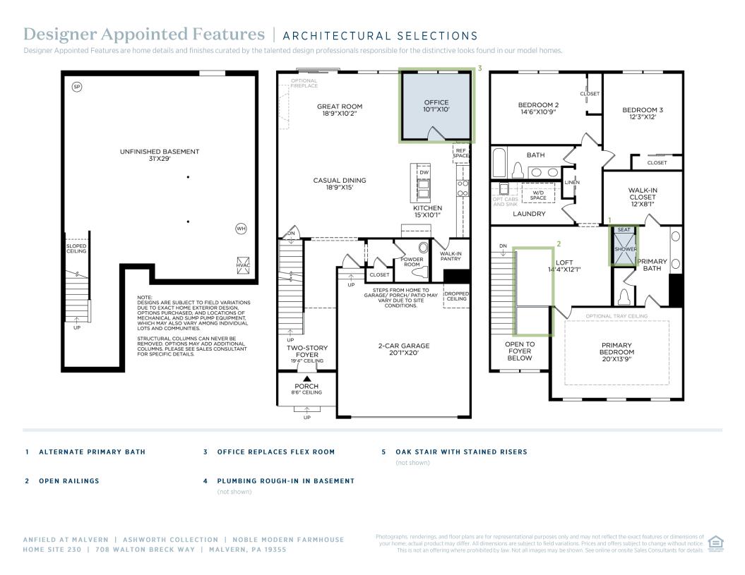 The Noble home design offers flexibility and comfort within an open-concept floor plan. A stunning foyer welcomes you into the home, leading into the expansive great room, casual dining area, and adjacent flex room. Overlooking the main living space is the well-designed kitchen, enhanced by a walk-in pantry, large center island, and ample counter and cabinet space. The elegant primary bedroom suite is tucked away on the second floor, featuring a sizable walk-in closet and spa-like primary bath that offers dual sinks, a large shower, and private water closet. The second floor is enhanced by a spacious loft that provides additional living space and is central to the secondary bedrooms as well as a hall bath. The Noble is also highlighted by easily accessible second-floor laundry, a powder room, and plenty of additional storage.