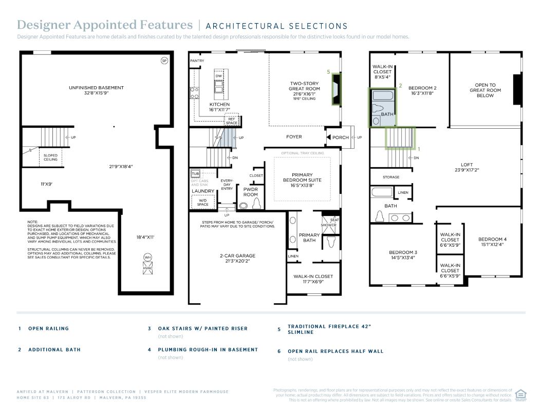 The thoughtfully designed Vesper Elite opens with an elegant foyer offering views to the soaring great room. Adjacent, an L-shaped kitchen features plenty of counter and cabinet space, a center island with breakfast bar seating, and a pantry. The secluded primary bedroom suite is complete with a large walk-in closet and a charming primary bath that includes a dual-sink vanity, a luxe shower with seat, linen storage, and a private water closet. Central to a generous loft that overlooks the main living area are three secondary bedrooms with walk-in closets and a full hall bath with linen storage and a dual-sink vanity. Additional highlights include first-floor laundry, an everyday entry, and a powder room.