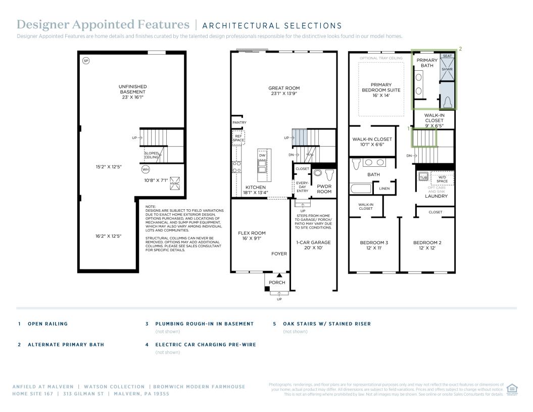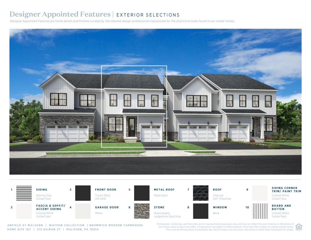The Bromwich features a modern design and an open-concept floor plan ideal for entertaining and relaxing. An inviting foyer opens onto a versatile flex room that leads into the spacious great room. The kitchen is well-appointed, complete with a large center island with breakfast bar, ample counter and cabinet space, and a sizable pantry. On the second floor, an impressive primary bedroom suite boasts dual walk-in closets and a tranquil primary bath featuring a dual-sink vanity and luxe shower. Two secondary bedrooms, one with a walk-in closet, share a hall bath. The Bromwich also featured convenient bedroom-level laundry, a first-floor powder room, and an everyday entry.