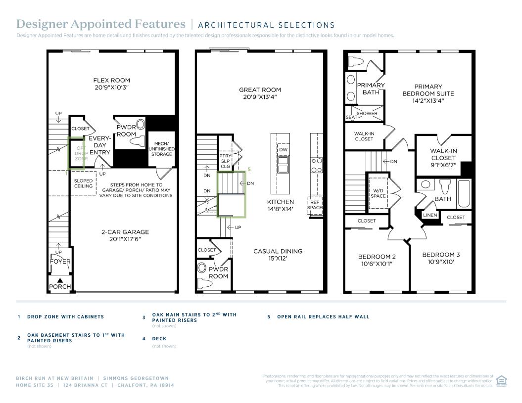 The Simmons offers three thoughtfully arranged levels that balance style and everyday function. A welcoming foyer leads to a versatile flex room, ideal for work or relaxation. The second floor features an open-concept great room, a bright casual dining area, and a well-equipped kitchen with a spacious center island. Located on the third floor, the sophisticated primary bedroom offers dual walk-in closets and a relaxing bath with a dual-sink vanity, a spacious shower with built-in seat, and a private water closet. Two lovely secondary bedrooms share a full hall bath. Additional highlights include an everyday entry, a second-floor powder room, and convenient bedroom-level laundry.