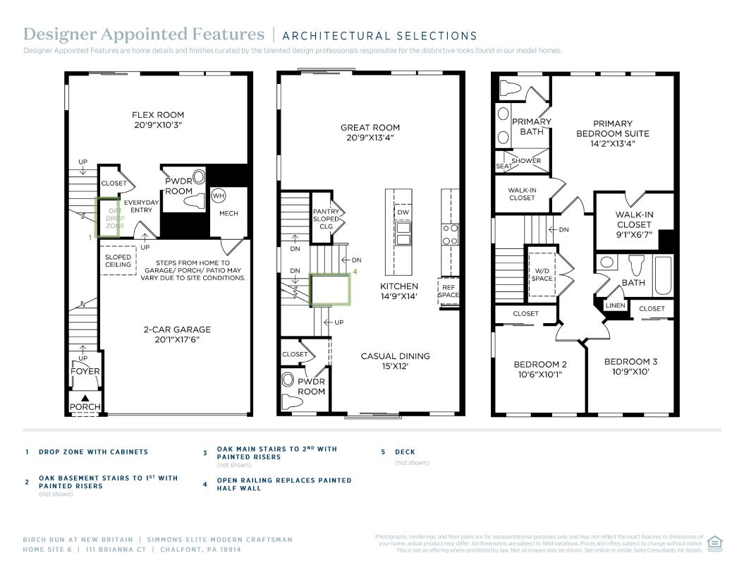 The Simmons Elite offers a thoughtfully designed layout with ample space for everyday living and entertaining. A foyer leads up to the spacious, open-concept main living area, highlighted by a stunning great room. Overlooking a casual dining area, the gourmet kitchen is expertly crafted with plenty of counter and cabinet space and a large center with breakfast bar. The third level features the lavish bedroom primary suite that offers dual walk-in closets and a lush private bath complete with dual sinks, a luxe shower with seat, and a private water closet. Adjacent, you'll find two sizable secondary bedrooms that share a full hall bath. Tucked away on the first floor is a spacious flex room that provides additional living space. Also featured in the Simmons Elite are powder rooms on the first and second floor, a convenient everyday entry, bedroom-level laundry, and added storage throughout.