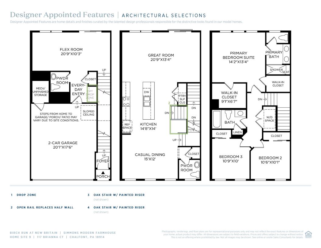 The Simmons offers three thoughtfully arranged levels that balance style and everyday function. A welcoming foyer leads to a versatile flex room, ideal for work or relaxation. The second floor features an open-concept great room, a bright casual dining area, and a well-equipped kitchen with a spacious center island. Located on the third floor, the sophisticated primary bedroom offers dual walk-in closets and a relaxing bath with a dual-sink vanity, a spacious shower with built-in seat, and a private water closet. Two lovely secondary bedrooms share a full hall bath. Additional highlights include an everyday entry, a second-floor powder room, and convenient bedroom-level laundry.