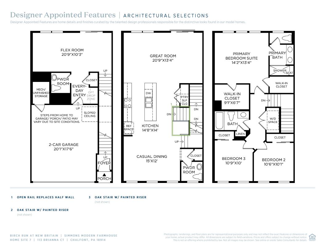 The Simmons offers three thoughtfully arranged levels that balance style and everyday function. A welcoming foyer leads to a versatile flex room, ideal for work or relaxation. The second floor features an open-concept great room, a bright casual dining area, and a well-equipped kitchen with a spacious center island. Located on the third floor, the sophisticated primary bedroom offers dual walk-in closets and a relaxing bath with a dual-sink vanity, a spacious shower with built-in seat, and a private water closet. Two lovely secondary bedrooms share a full hall bath. Additional highlights include an everyday entry, a second-floor powder room, and convenient bedroom-level laundry.