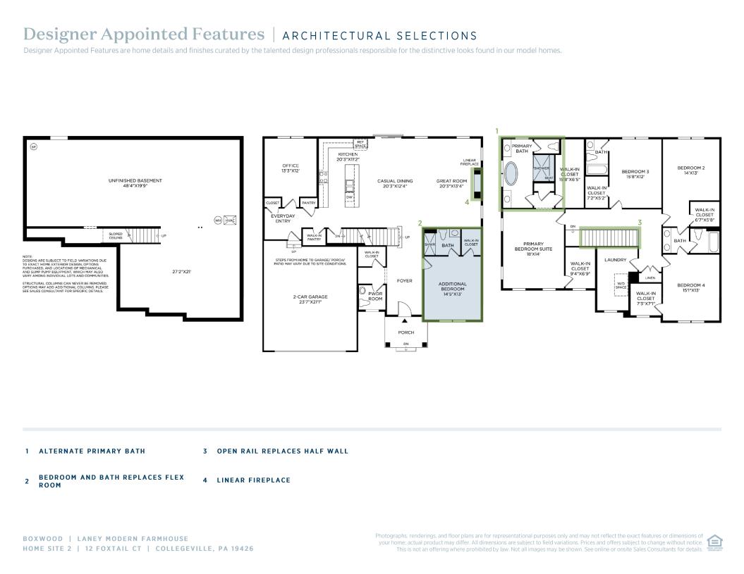 The Laney home design offers versatile living spaces within a thoughtfully designed open floor plan. The spacious main living space is highlighted by a great room and a casual dining area adjacent to the well-appointed kitchen featuring wraparound counter and cabinet space, two pantries, and a center island. Upstairs, the primary bedroom suite is enhanced by dual walk-in closets and a serene private bath with dual vanities, a luxurious shower, and a private water closet. Secondary bedrooms, one with a private bath and two sharing a full bath, offer walk-in closets and are central to easily accessible laundry. Additional features include a private office, a powder room on the first floor, a convenient everyday entry, and plenty of storage.