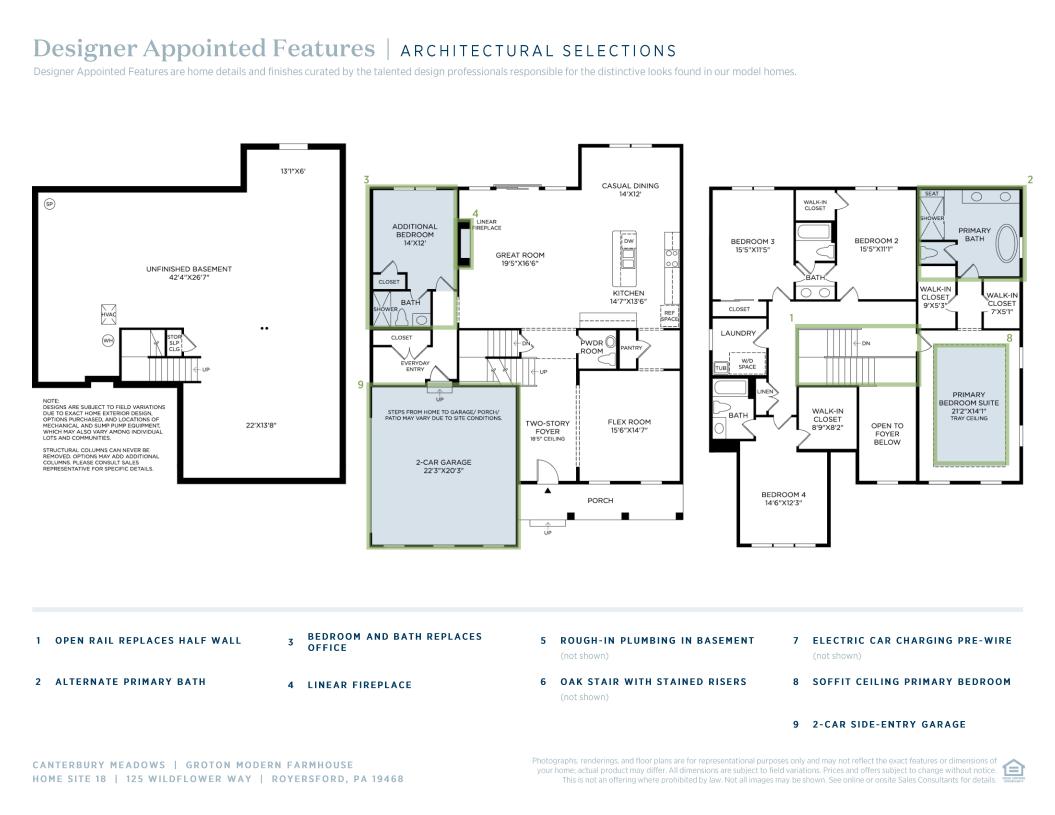 The elegant Groton perfectly complements every lifestyle with its blend of open-concept living spaces and relaxing retreats. Flowing past a spacious flex room, the soaring two-story foyer presents pristine views of a bright casual dining area and the expansive great room with rear yard access. Defined by an oversized center island with breakfast bar, the impressively crafted kitchen is complete with plenty of counter and cabinet space as well as a sizable pantry and passthrough to the front flex room. The primary bedroom suite is enhanced by dual walk-in closets and a spa-like primary bath with a dual-sink vanity and a large luxe show with seat. Secondary bedrooms are spacious, featuring walk-in closets and a shared hall bath with a separate dual-sink vanity area. Off the great room is a private office with a walk-in closet, as the Groton also offers easily accessible second-floor laundry, a convenient powder room, an everyday entry, and plenty of additional storage space.