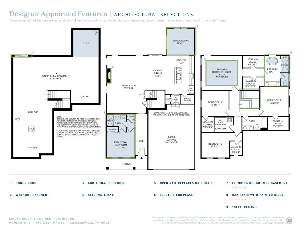 Comfort and luxury define the Lorimer home design. Upon entering through the inviting foyer, you’re greeted by a sprawling great room that seamlessly flows into a casual dining space and a gourmet kitchen, perfect for daily living and entertaining. The well-appointed kitchen features a center island with a breakfast bar, and a generous walk-in pantry. The second-floor primary bedroom provides a tranquil retreat, with two spacious walk-in closets and a spa-like bath with a dual-sink vanity and a comfortable shower. Three secondary bedrooms each have ample walk-in closets and share a full hall bath. Additional highlights include a versatile flex room, a convenient first-floor powder room, an everyday entry, and a two-car garage with storage space.