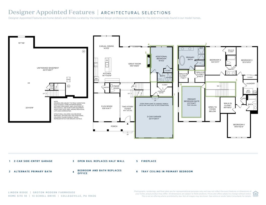 The elegant Groton perfectly complements every lifestyle with its blend of open-concept living spaces and relaxing retreats. Flowing past a spacious flex room, the soaring two-story foyer presents pristine views of a bright casual dining area and the expansive great room with rear yard access. Defined by an oversized center island with breakfast bar, the impressively crafted kitchen is complete with plenty of counter and cabinet space as well as a sizable pantry and passthrough to the front flex room. The primary bedroom suite is enhanced by dual walk-in closets and a spa-like primary bath with a dual-sink vanity and a large luxe show with seat. Secondary bedrooms are spacious, featuring walk-in closets and a shared hall bath with a separate dual-sink vanity area. Off the great room is a private office with a walk-in closet, as the Groton also offers easily accessible second-floor laundry, a convenient powder room, an everyday entry, and plenty of additional storage space.