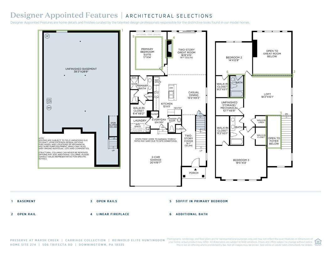 The Reinhold Elite offers flexible spaces for entertaining and everyday living. An expansive open concept two-story foyer and two-story great room with rear yard access overlook the spacious casual dining area. Adjacent, the well-designed kitchen is highlighted by a center island with breakfast bar, plenty of counter and cabinet space, and a pantry. The stunning primary bedroom suite is enhanced by a generous walk-in closet and an impressive primary bath with a dual-sink vanity, a luxe shower with seat, linen storage, and a private water closet. Secondary bedrooms, one with a walk-in closet, the other with dual walk-in closets, share a hall bath with a dual-sink vanity. Additional highlights include an ample loft, conveniently located laundry, a powder room, an everyday entry, and additional storage.
