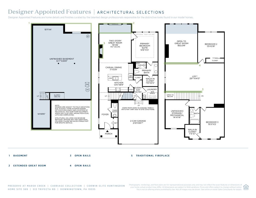 The Corwin Elite blends sophistication and comfort in its lovely design. The home opens with an intimate foyer that flows into a spacious casual dining area and a stunning two-story great room with rear yard access. The well-appointed kitchen is enhanced by an oversized center island with breakfast bar, plenty of counter and cabinet space, and an ample pantry. The charming primary bedroom suite is highlighted by a sizable walk-in closet and a deluxe primary bath with a dual-sink vanity, a large luxe shower with seat, and a private water closet. On the second floor, an expansive loft offers exciting living and entertaining possibilities. Secondary bedrooms, one with a roomy closet, the other with a walk-in closet, share a full hall bath. Additional highlights include conveniently located laundry, a powder room, an everyday entry, and plenty of additional storage.