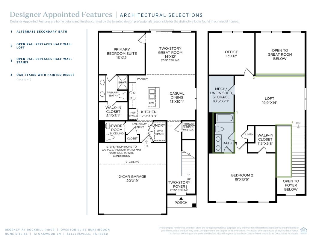 The Overton Elite offers a stunning layout with a modern and stylish design. Upon entering, you're greeted by an impressive two-story foyer that flows seamlessly into the heart of the home. The first level boasts a spacious, two-story great room that overlooks a casual dining area and the expertly crafted kitchen. The kitchen is enhanced with ample counter and cabinet space and a large center island, ideal for easy entertaining. The primary bedroom suite is secluded on the first floor as well, complete with a sizable walk-in closet and a spa-like private bath featuring dual sinks and a luxe shower. On the second floor, you'll find a generous loft that is central to a flexible office space and a sizable secondary bedroom complete with a walk-in closet and a shared hall bath. Additional features of the home include easily accessible laundry, a powder room, a convenient everyday entry, and plenty of added storage.