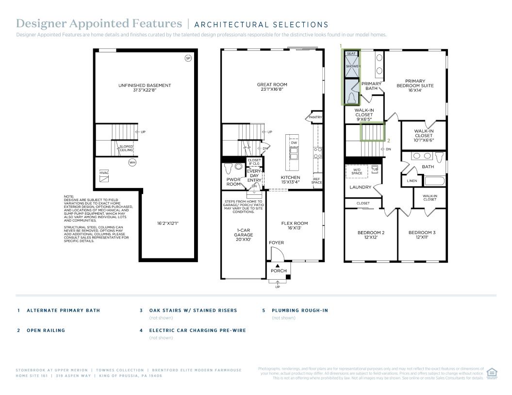 The Brentford Elite offers a comfortable and flexible layout designed for modern living. A welcoming foyer opens to a versatile flex room, ideal for a home office, formal dining, or creative space. The spacious great room connects seamlessly to the kitchen, which features a center island and pantry. A nearby powder room adds convenience for guests, while the everyday entry off the one-car garage includes a closet for effortless organization. Upstairs, the private primary suite features two walk-in closets and a spa-inspired bath with a dual-sink vanity and a spacious shower. Two secondary bedrooms share a full hall bath, and the laundry room is thoughtfully positioned nearby for easy access.