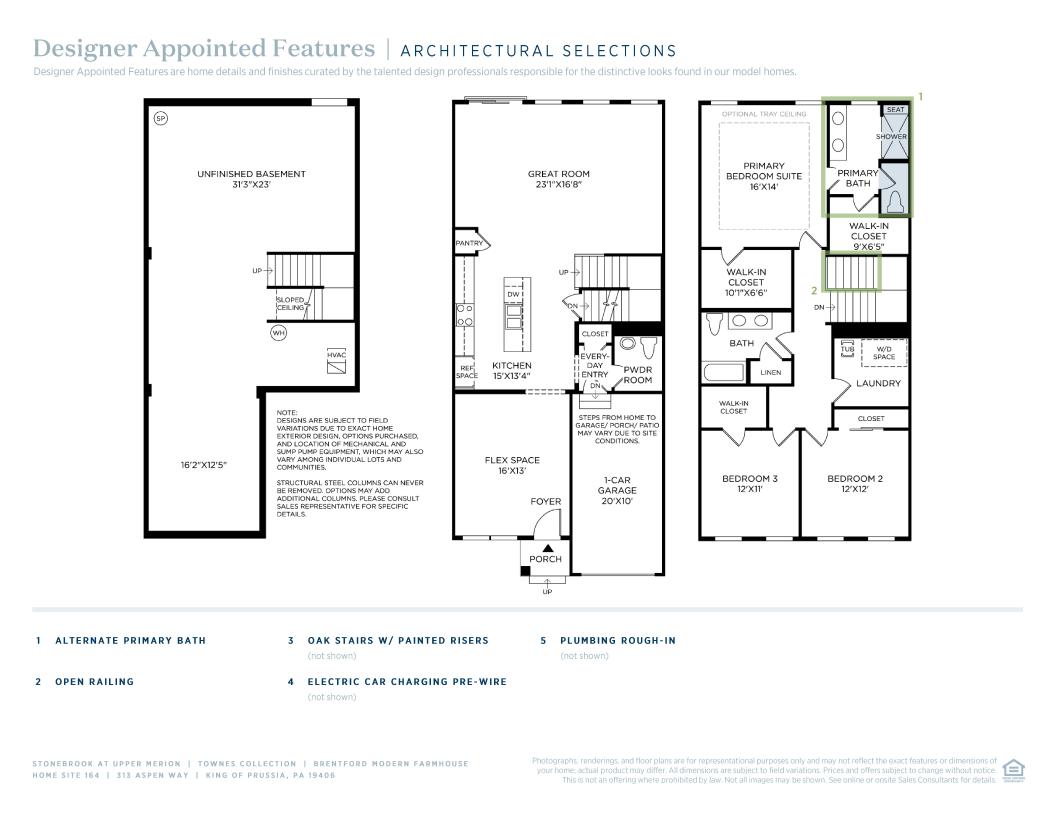 You’ll feel right at home in the Brentford starting with an inviting foyer that opens onto the spacious flex room with views to the expansive great room with rear yard access. The well-designed kitchen is highlighted by a large center island with breakfast bar, plenty of counter and cabinet space, and sizable pantry. Highlighting the elegant primary bedroom suite are dual walk-in closets and beautiful primary bath with dual-sink vanity, luxe shower, and private water closet. Secondary bedrooms feature generous closets and shared hall bath with dual-sink vanity and linen storage. Additional highlights include a convenient powder room, everyday entry, centrally located laundry, and additional storage throughout.