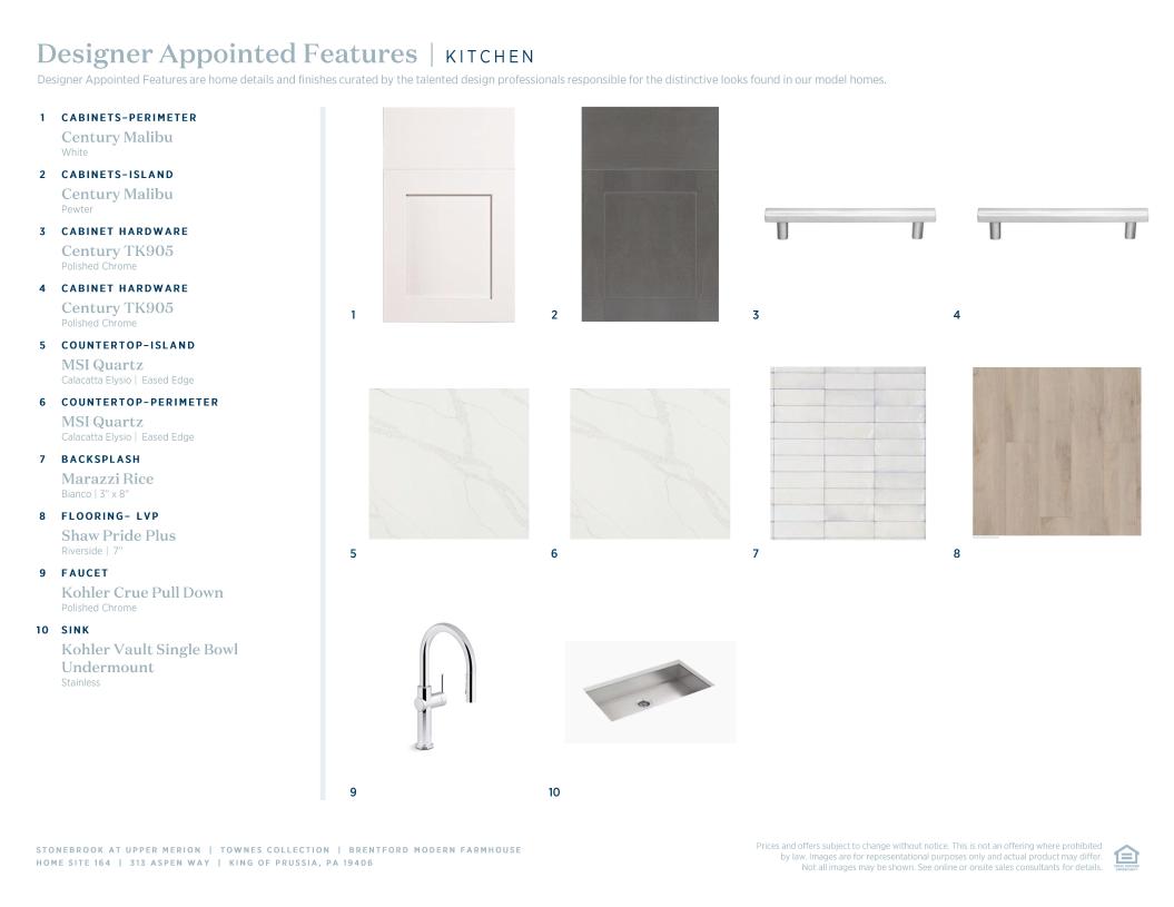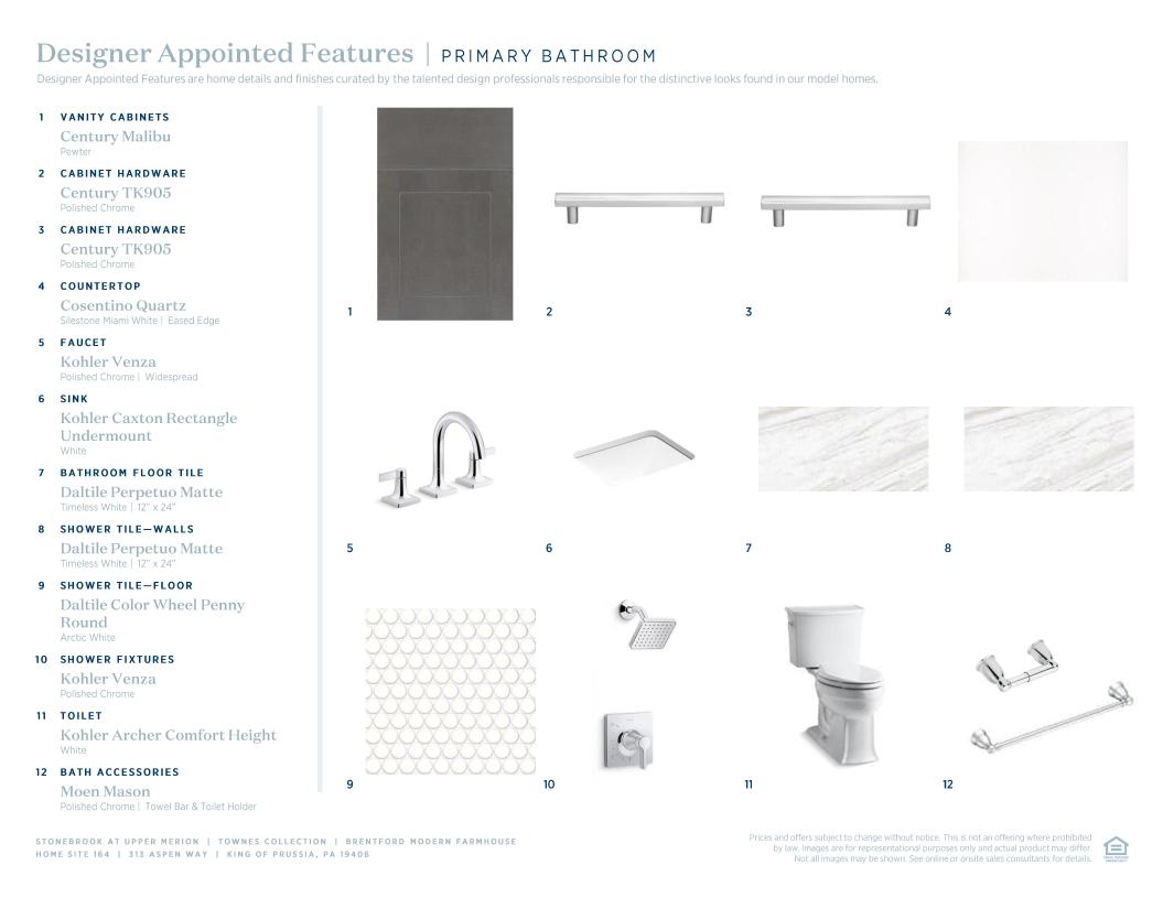 Toll Brothers Designer Appointed Collections are professionally curated selections of fixtures and finishes that come together to create a cohesive, distinctive look for a home. Learn More