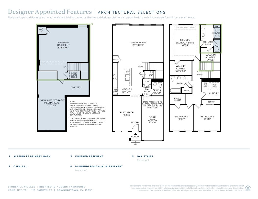 You’ll feel right at home in the Brentford starting with an inviting foyer that opens onto the spacious flex room with views to the expansive great room with rear yard access. The well-designed kitchen is highlighted by a large center island with breakfast bar, plenty of counter and cabinet space, and sizable pantry. Highlighting the elegant primary bedroom suite are dual walk-in closets and beautiful primary bath with dual-sink vanity, luxe shower, and private water closet. Secondary bedrooms feature generous closets and shared hall bath with dual-sink vanity and linen storage. Additional highlights include a convenient powder room, everyday entry, centrally located laundry, and additional storage throughout.
