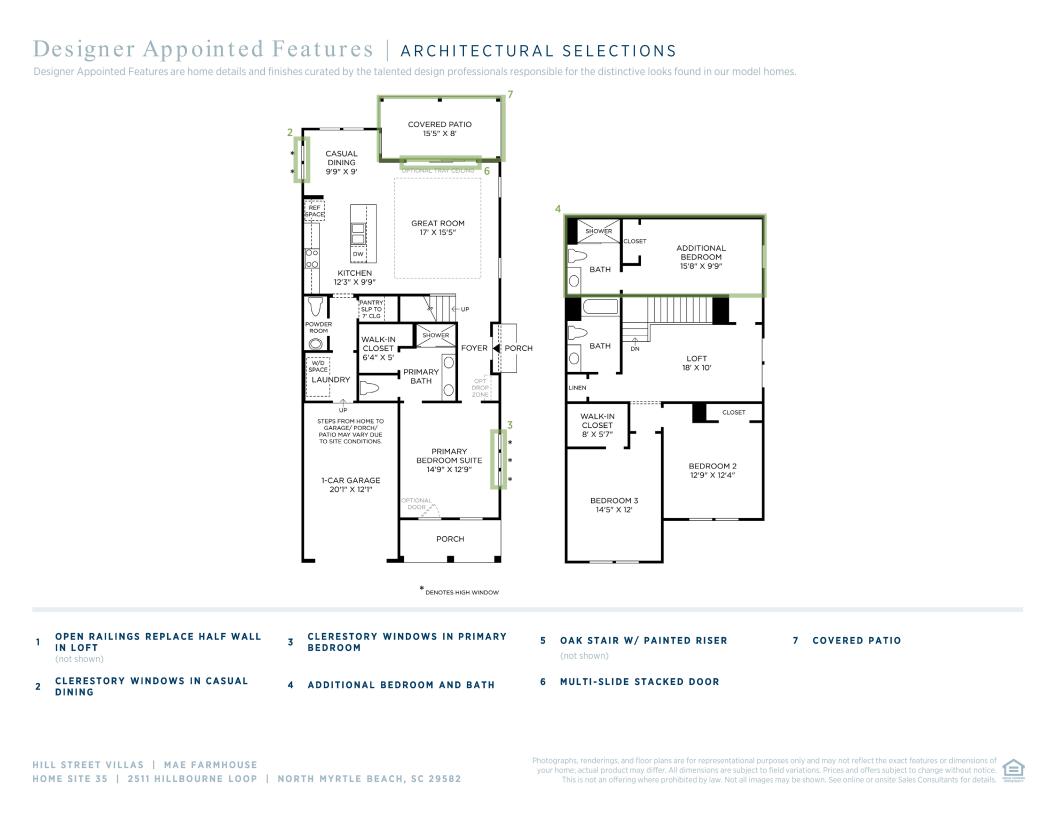 The Mae's distinctive design features a first-floor primary bedroom suite and private side entry. Inside, the main foyer flows right into the spacious great room and casual dining area with rear yard access. A large center island with breakfast bar, plenty of counter and cabinet space, and roomy pantry are the highlights of the well-appointed kitchen. The beautiful primary bedroom suite is complete with a spacious walk-in closet and gorgeous primary bath with large luxe shower and private water closet. Upstairs, central to a sizable loft, secondary bedrooms feature ample closets and shared hall bath. Additional highlights include a convenient powder room, centrally located laundry, and additional storage.