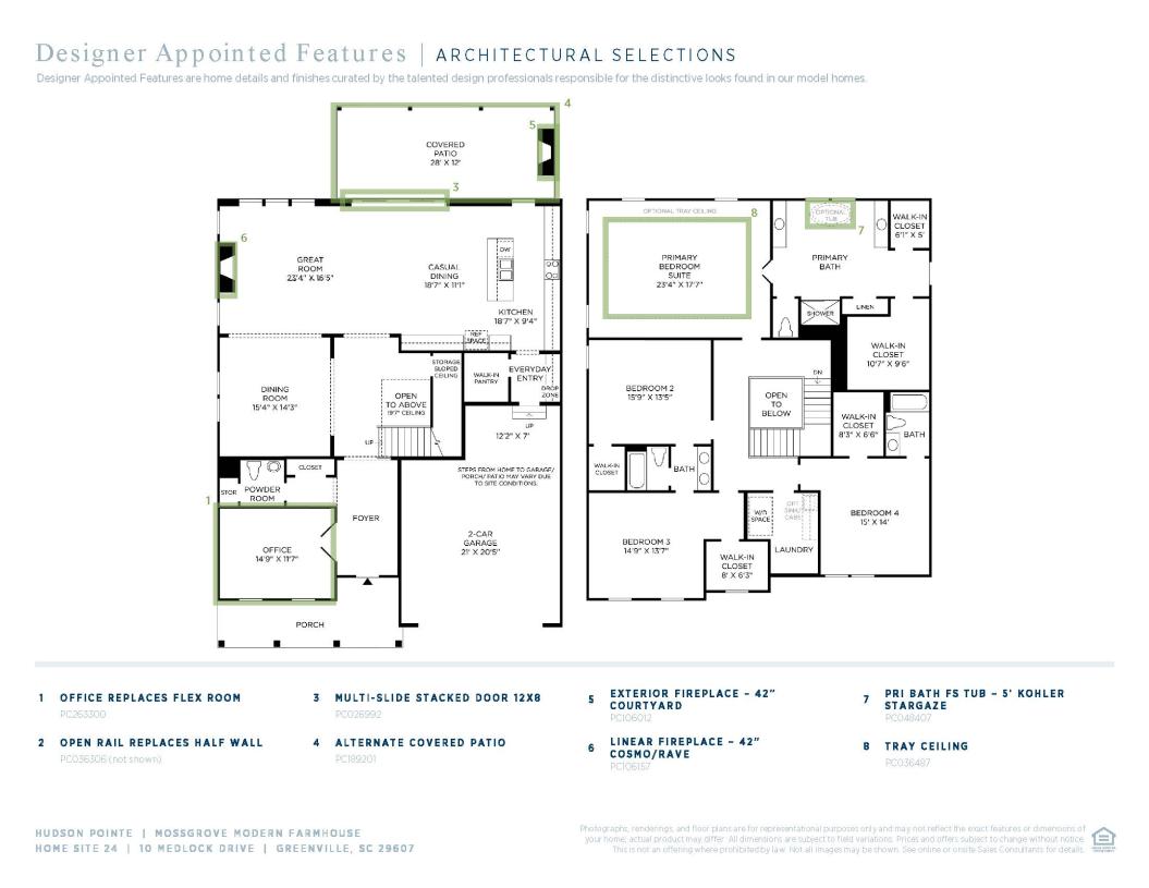 The beautiful Mossgrove embodies everything you could want in a home, an entertainer's dream. The home flows seamlessly throughout; the expansive great room is open to the gourmet kitchen, accompanied by plenty of cabinet and counter space with a massive center island. This state-of-the-art kitchen is truly the centerpiece of the home. The open-concept great room is the perfect atmosphere for entertaining; multi-stacked doors lead to a covered patio with an outdoor fireplace. A secluded flex room with French doors makes for the perfect home office.