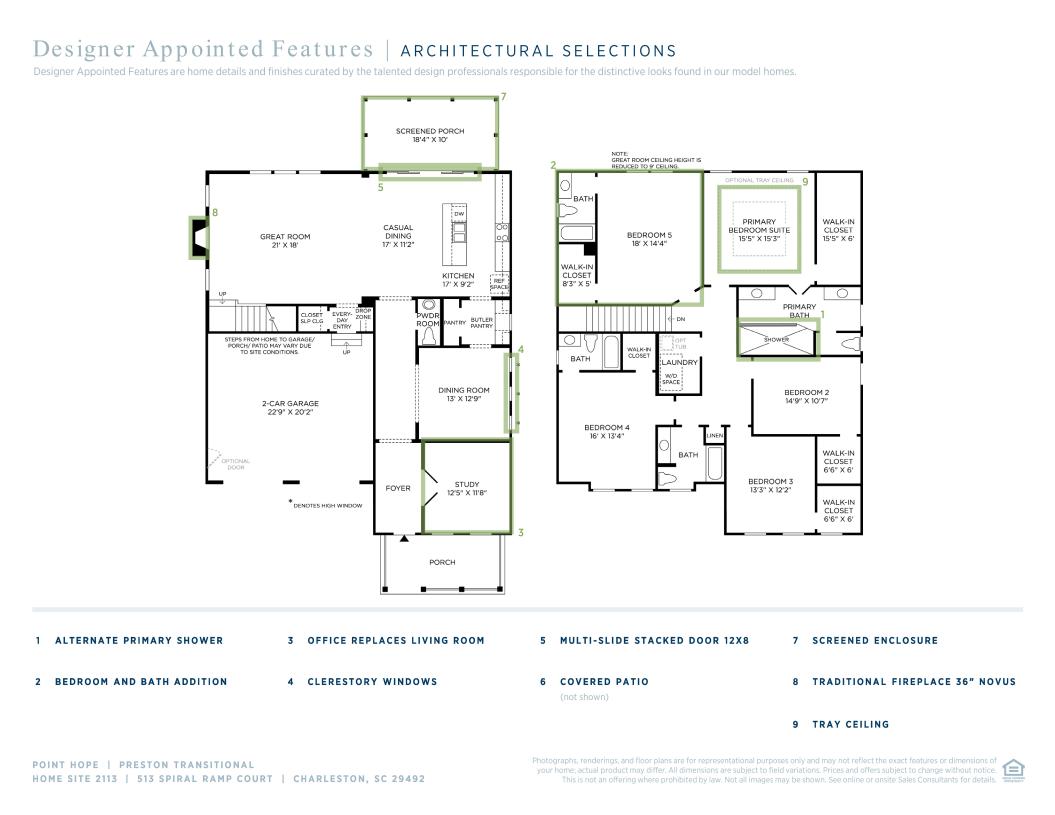 The Preston’s impressive, extended covered front porch and foyer reveal the lovely flexible living room, dining room, and kitchen beyond. The well-equipped kitchen overlooks a bright breakfast area and spacious great room. The kitchen features a large center island with breakfast bar, ample counter and cabinet space, a butler’s pantry, and spacious pantry. In additional, the first floor showcases a private dining room for formal entertainment and a flexible living room. The second floor provides a splendid view of the great room below. The secondary bedrooms are spacious and offer walk-in closets. The primary suite has a spa-like retreat with a dual-split vanity, luxe-glass enclosed shower, linen closet, private water closet, and large walk-in closet. Additional features include a centrally located laundry and ample storage space.