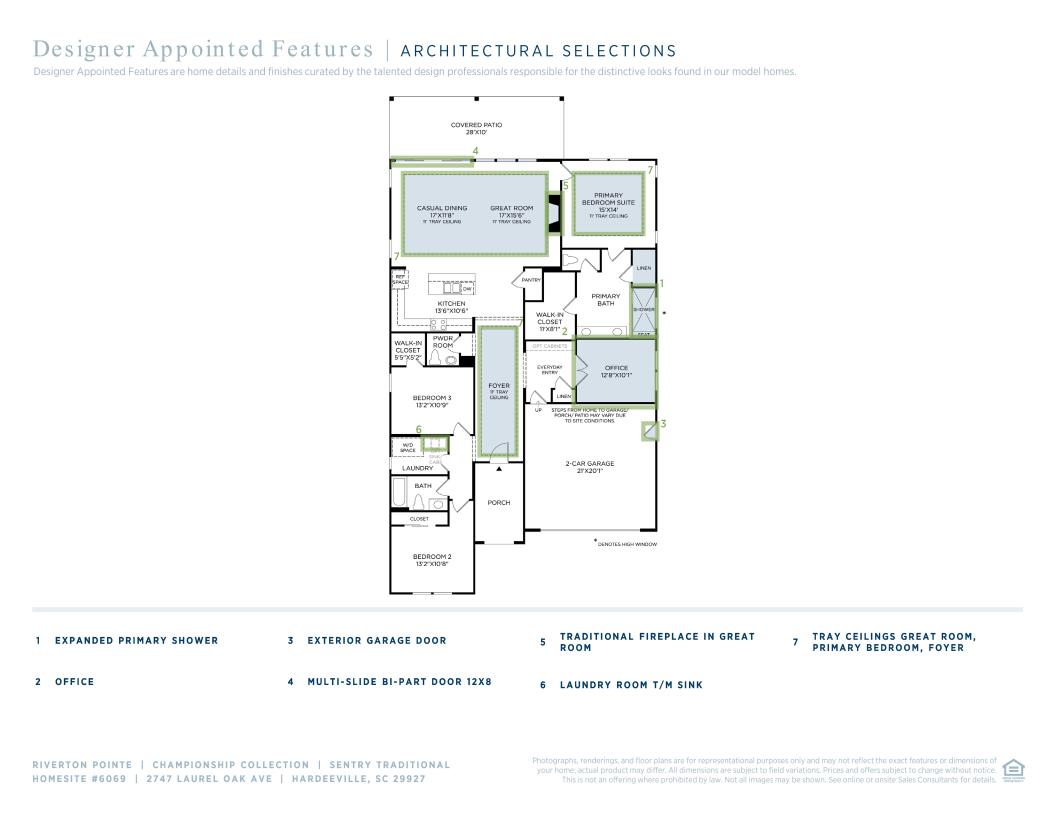 Leaving an impression at every turn, the Sentry combines beautiful design with fabulous function throughout. The spacious foyer hall reveals the expansive great room, casual dining area, and desirable large covered patio. The well-designed kitchen overlooks a large center island with breakfast bar, wraparound counter and cabinet space, and ample pantry. The gorgeous primary bedroom suite is highlighted by a generous walk-in closet and superb primary bath with dual-sink vanity, large luxe shower, linen storage, and water closet. Secondary bedrooms feature sizable closets and shared hall bath. Additional highlights include a secluded flex room, convenient powder room and everyday entry, centrally located laundry, and additional storage.